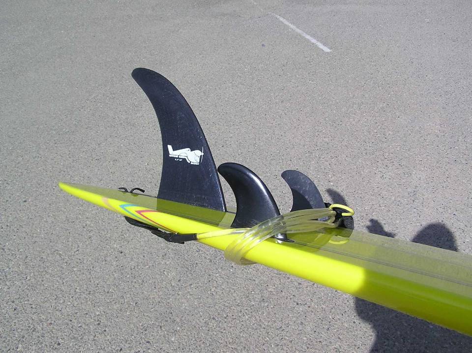Bob- Yes, moving the fins around to create an asymmetrical was just the cheap way to begin the experiment. With pad, drive to Santa Cruz to pick the board up, and everything, the MP's are close to $800+, so before I invested that kind of money I had to know that this would be a worthwhile avenue to go down. What difference in the ride did I notice? Simple: it did everything better. EVERYTHING. The board was faster, looser off the bottom and way looser off the top, and in short, the feeling was so noticeable that I figured the money for a template asymm would be worth it, so I'm pursuing that. I was riding my current board last week at a nice little isolated point break, and I was easily flipping the board sideways and side-slipping it in the pocket at will, and then re-connecting the board and continuing down the line. I can do that with the full complement of quads on the bottom, but it's much harder.....so I was having some fun with that aspect of 'less' fins on the bottom.