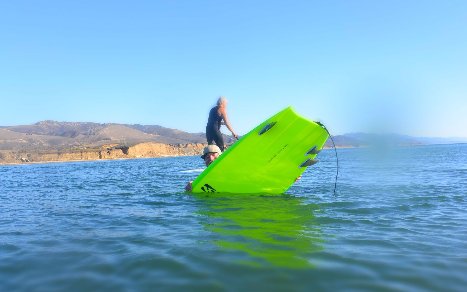 Here's a quick story. A few days ago, we found ourselves at a remote point break, and all the stars had lined up. I had finished surfing for the day...........and we had two jetski's full of young guys tied off of the stern of our boat. These guys were all excellent surfers, world class paddleboard/SUP standup downwind racer kinds of guys, super athletic and very open minded. They had been ogling the asymm Platter all day, and I urged them to try it out.