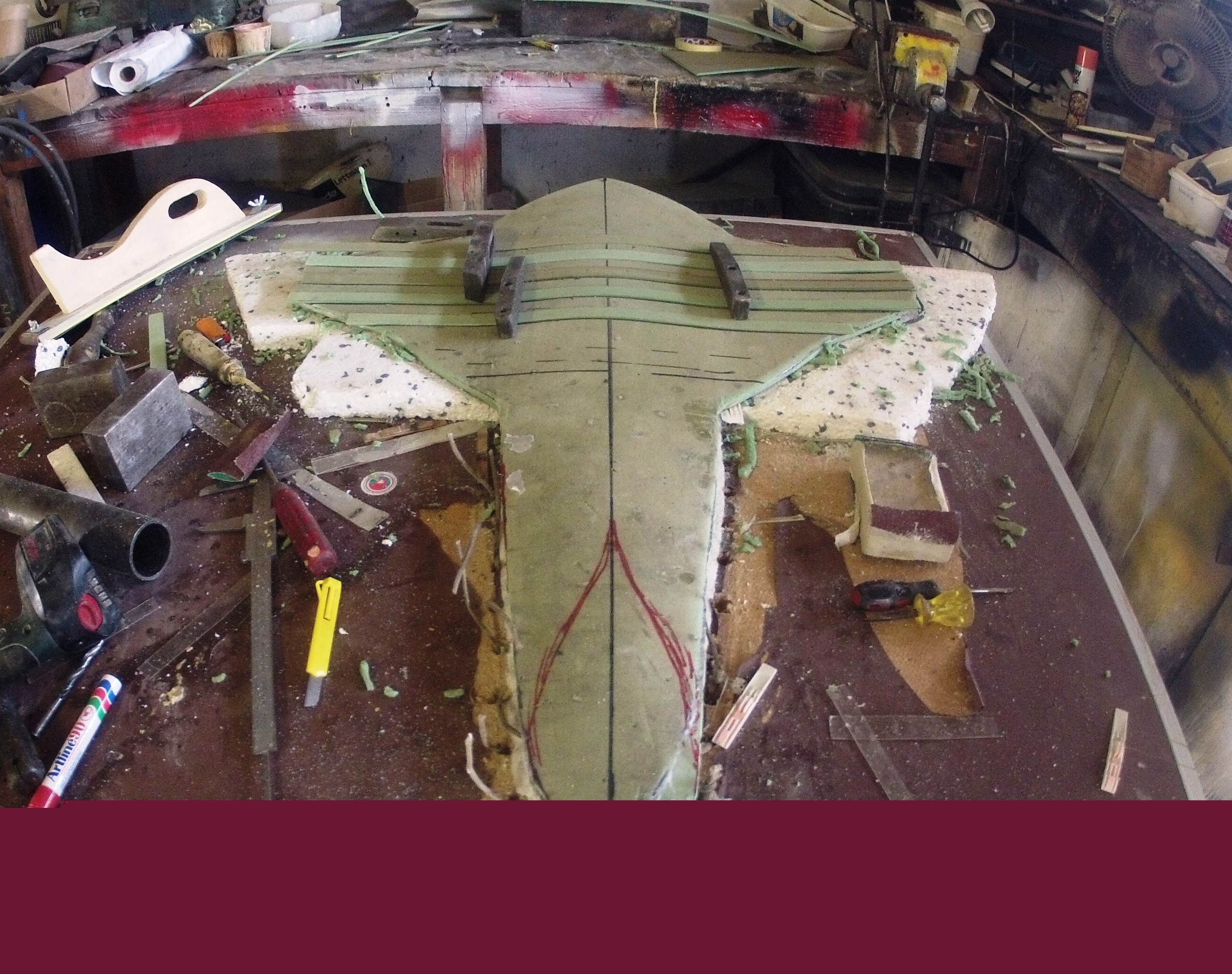 It is Airex core foam, I found by laminating two or more sheets with 6 oz cloth I can press form the rocker, concaves etc into the foam using simple tools .That’s a 1m ruler
