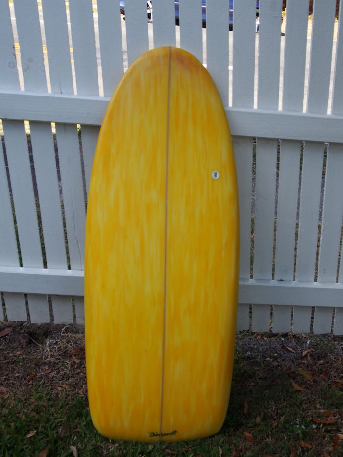 Board 4 was a compromise board, more volume, not as fast but I've had some nice tubes on it. Same dimensions but the rails weren't as hard in the tail. It also has a handle. It is a good all round board. I mostly have ridden this board finned. Fins allow night tight arcs.