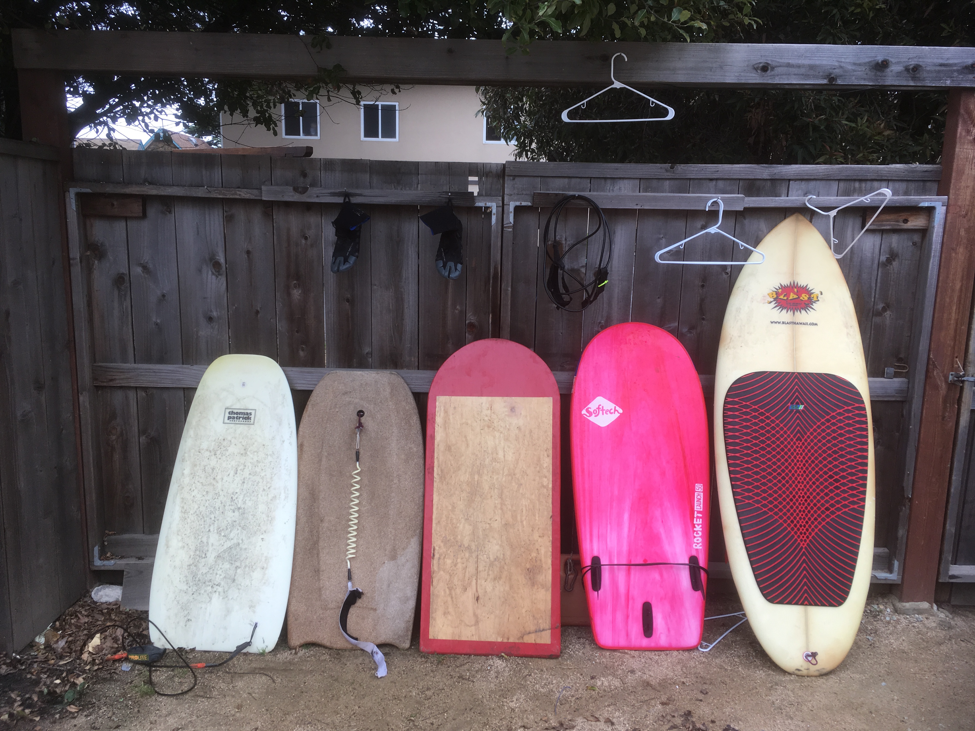 I use my plywood boards most of the time, occasionnaly a 42" bodyboard (when it is a little too big for me with the paipo), and sometimes a stand up board (when it is just too small to ride prone).