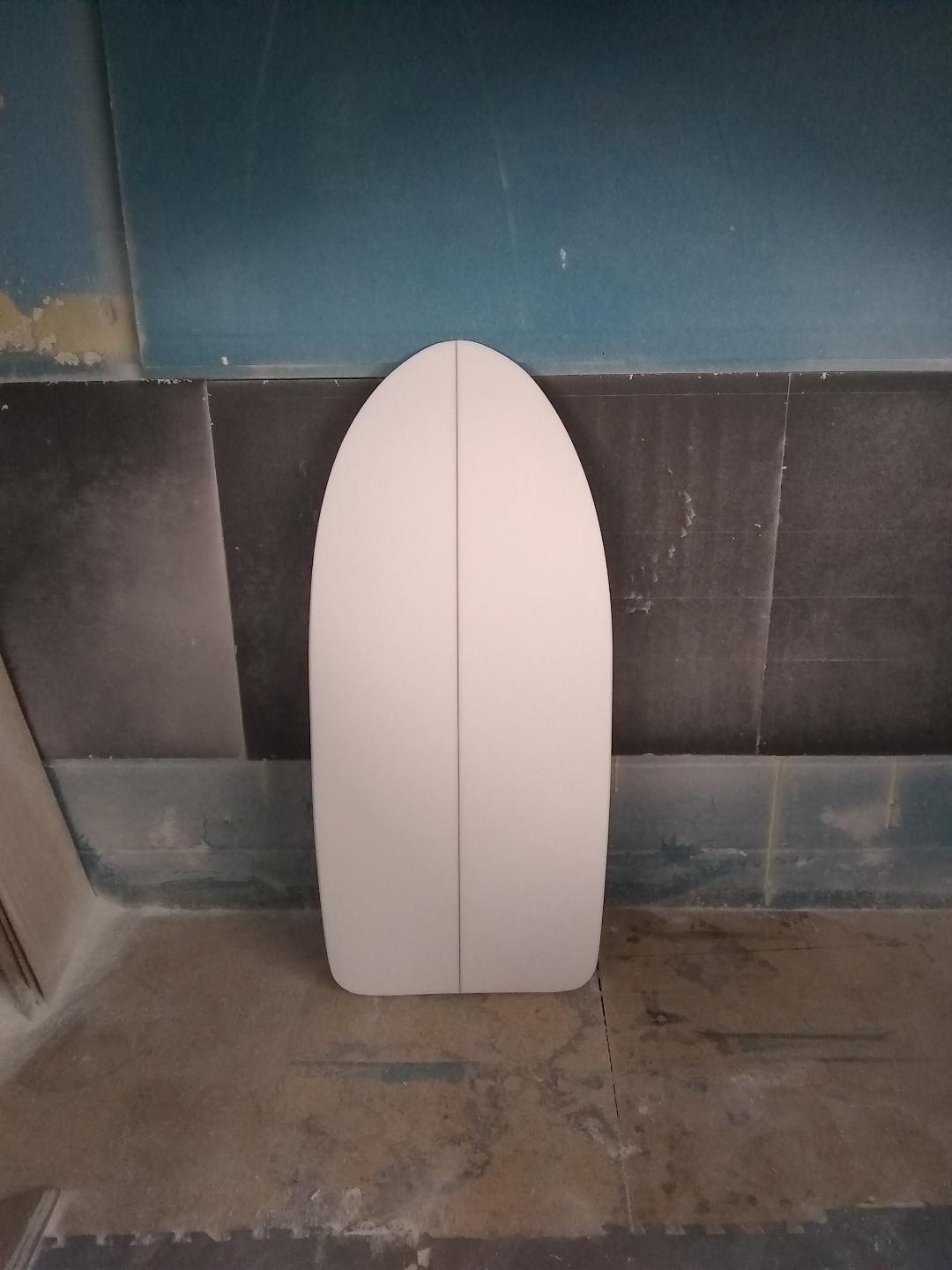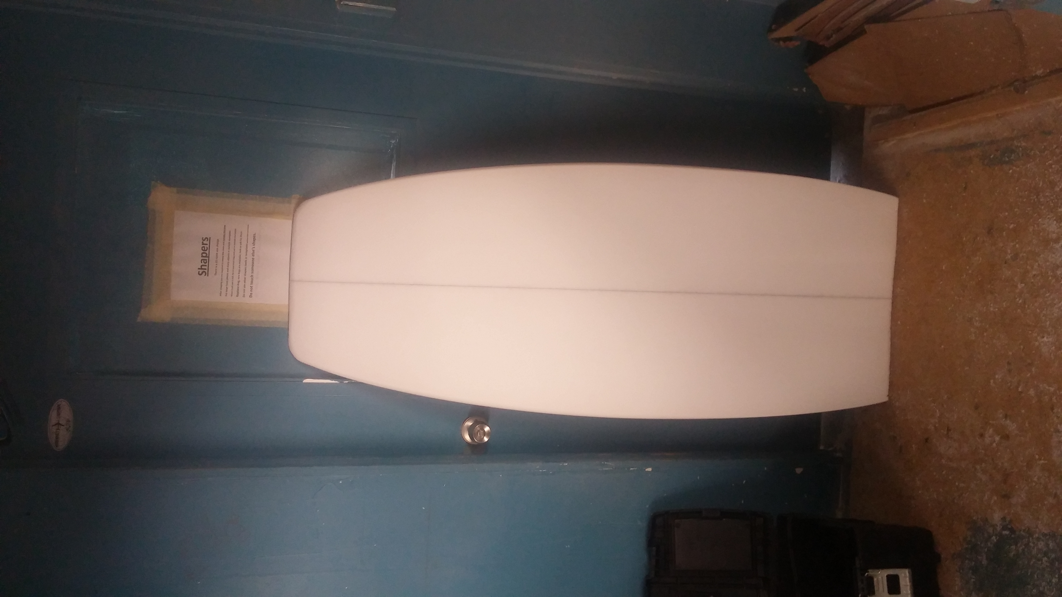 Here's what I came up with today, I shaped the board in my head for two weeks while waiting for the blank and this isn't what was in my mind. Dims are 4'6" 22.75 1.75" belly in the nose to flat to single through the fins. Slight concave deck with fins set at 4" and 1/8" toe twin fin. I used the marko wake surf blank, I hadn't shaped EPS for quite awhile. I didn't listen to myself and take two shaping sessions to do what I wanted to do. Not sure where I stand with shaping now think I'll take a long break from it.