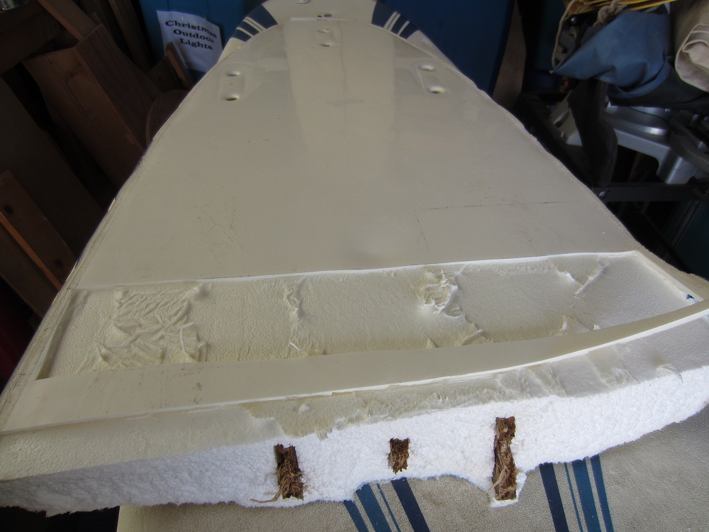 These actually are EPS, not PE like bodyboards. I didn't think about using deck material; I cut bottom skin. The deck material of this board is a bit beat anyway...board was well-abused. More photos later.