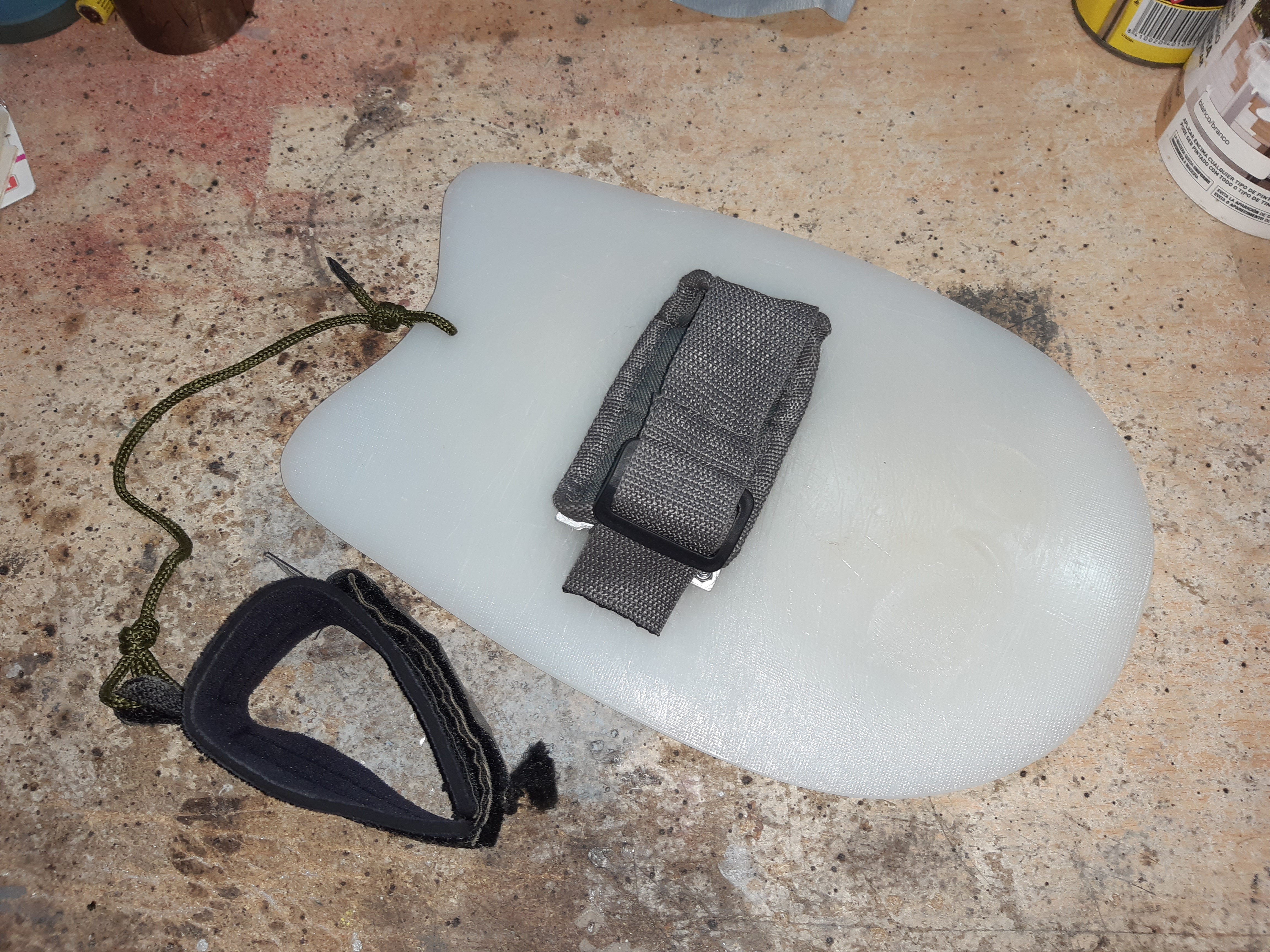 Used a kitchen cutting board, a strap from an old cooler bag, an old swim fins leash with paracord, scrap aluminium and some nuts and bolts.