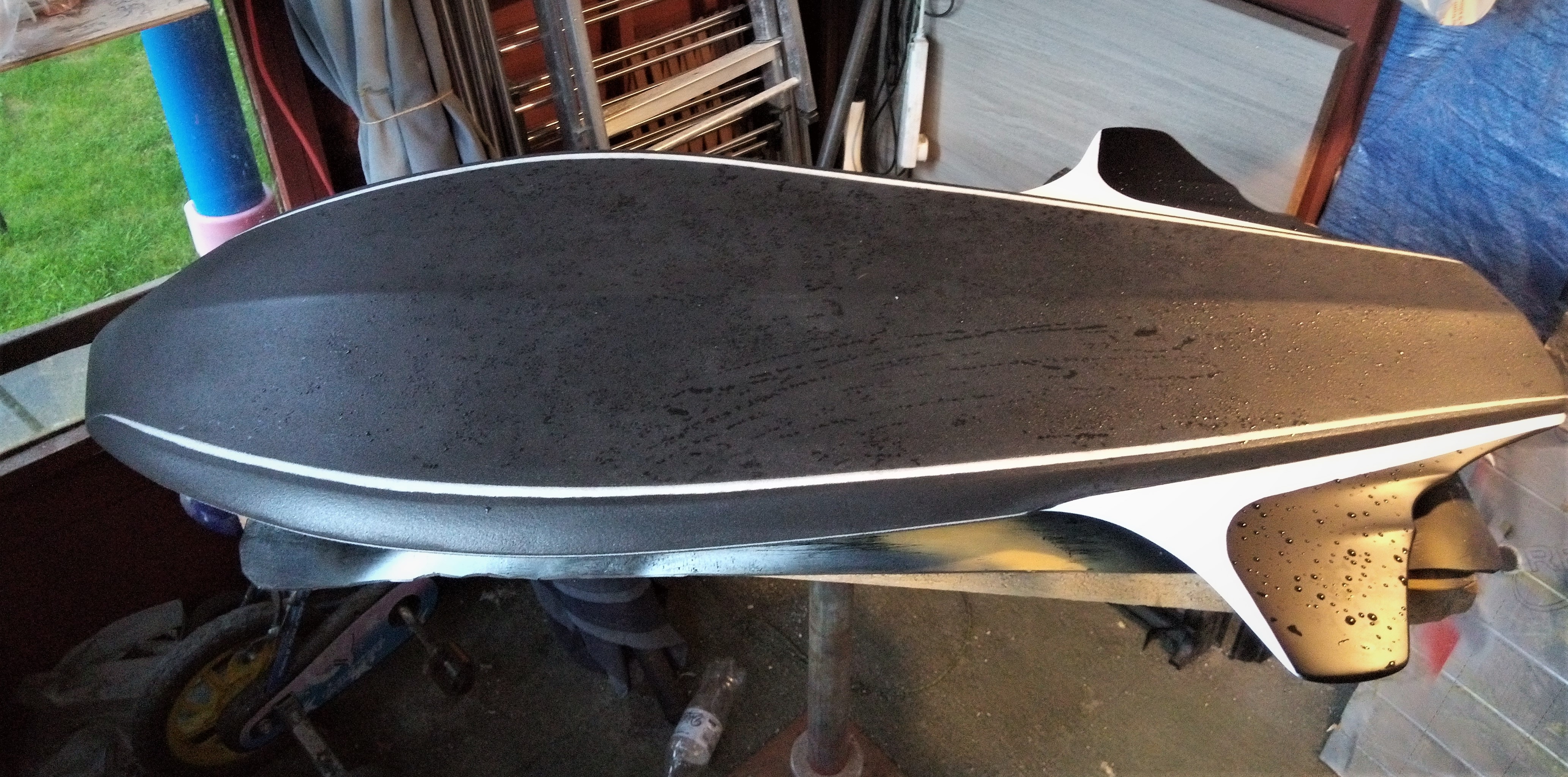 What a fantastic fulfilling hobby creating your own surfboards and the anticipation for the first test ride gives me goose bumps. Nobody seems to get this wing thing but when they light up down a wave face it is thrilling .This board is the longest most buoyant I have made. North Sea pleas bring waves