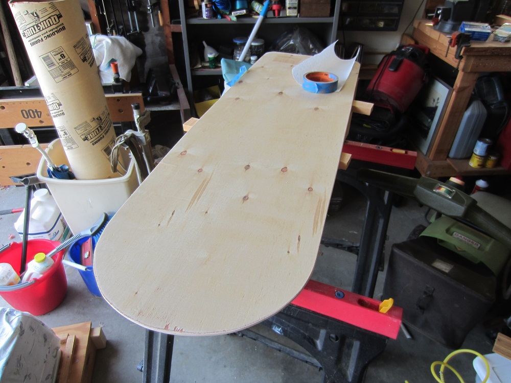 I know they usually have a nice bend in the nose. That would have been helpful here but I didn't think the thinner material would handle the steam or soak and dry. And I'm pretty sure I was right. But also I've found with 1/4" ply they can be bent up front as necessary to catch waves. This thing I made though, like a sea serpent. I missed on length too (scrap from the garage, right?). Mine was 40" long, which was fine for catching waves but at a threatening length given the undulation.