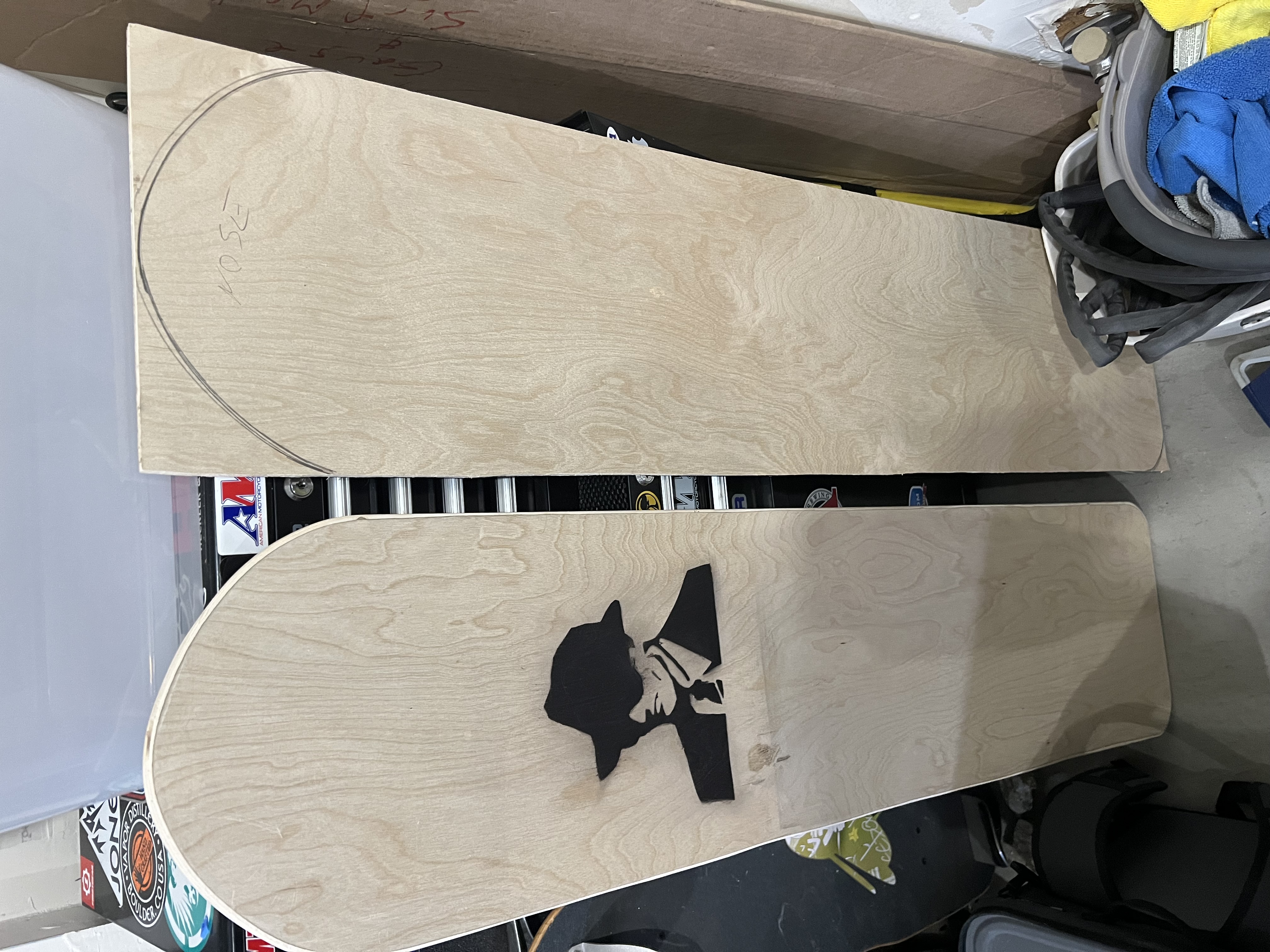 Have been on the search for bellyboards to buy here in the US. No luck so going at it myself. Trying to copy the classic UK dimensions of 120cm tall x 30cm wide x 0.9cm thick (mine is 4’x12”x1/2” birch plywood)…. Here I am mid build…. Will post up more pics as the project continues