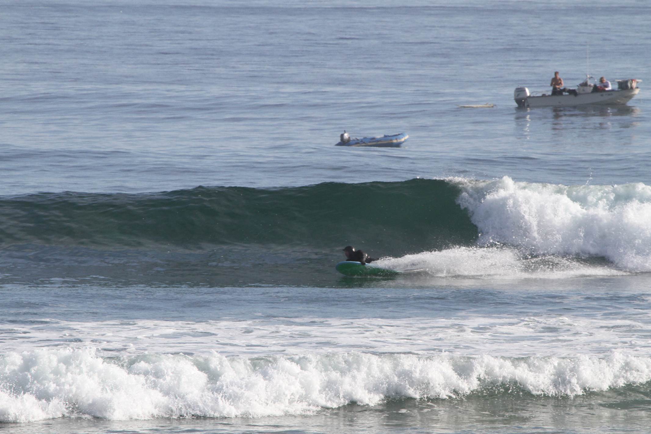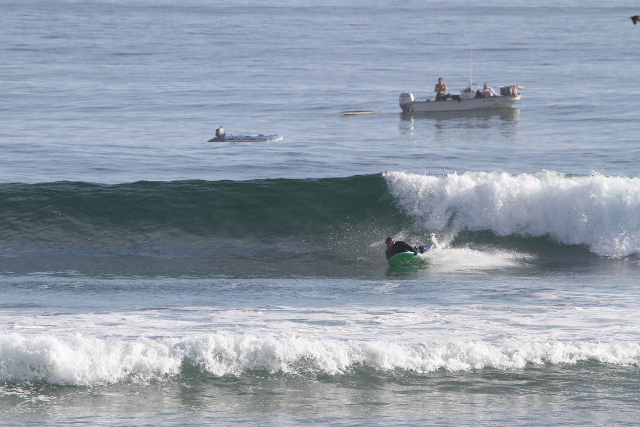 Well, that isn't me in that first photo, but yes, that swing-wide set caught ALL of us inside, and yes, I did get hammered. Remember that at 75 liters of floatation, this thing has a lot more float than even your typical 9-0 longboard, so one of the aspects of riding it is that you are NOT going to duck-dive it in surf much over 5'? But no matter, that's what God invented leashes for, so it's not a big deal. Even though it IS so floaty..............for some reason it pulls through waves (when ditched) much, much easier than any longboard I ever used to have? It may have something to do with the reduction in length..?