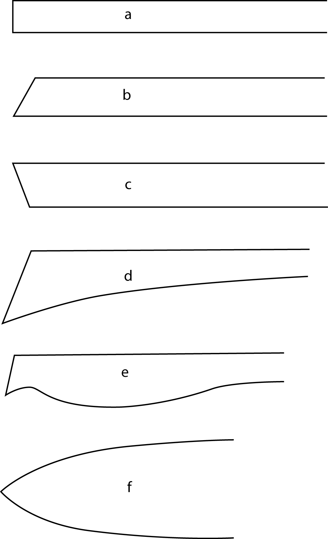 surfffoils, i can see why your rail works, its the hard edge on the bottom, maybe, what goes on above that doesnt really matter. above you can see some of the rails i have used in my boards, the only one that doesnt work very well is (e). that was on a wide foam board that i made and rode that bob mitzven copied and altered the bottom. it looked really cool but slid out like a mother. the others work great. (f) is a rail that i use with my foam/glass displacement hulls. it also works great when i remove the fin(s), flip it over and ride backwards. the nose becomes reverse rocker and becomes a great pivot point. i think i will make a foamy that is finless and see how that goes.