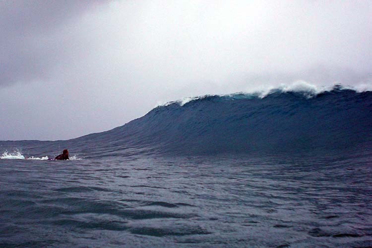 I did surf at this break one time--by accident--from shore it appeared to only be 6-8 ft, breaking waaaaaa out there. It was a solid 18-20 ft, and a cloud set must have come through at 20-25 ft because it broke in the channel as we paddled in (4 guys on 2 boards and the board I was on was lost forever).