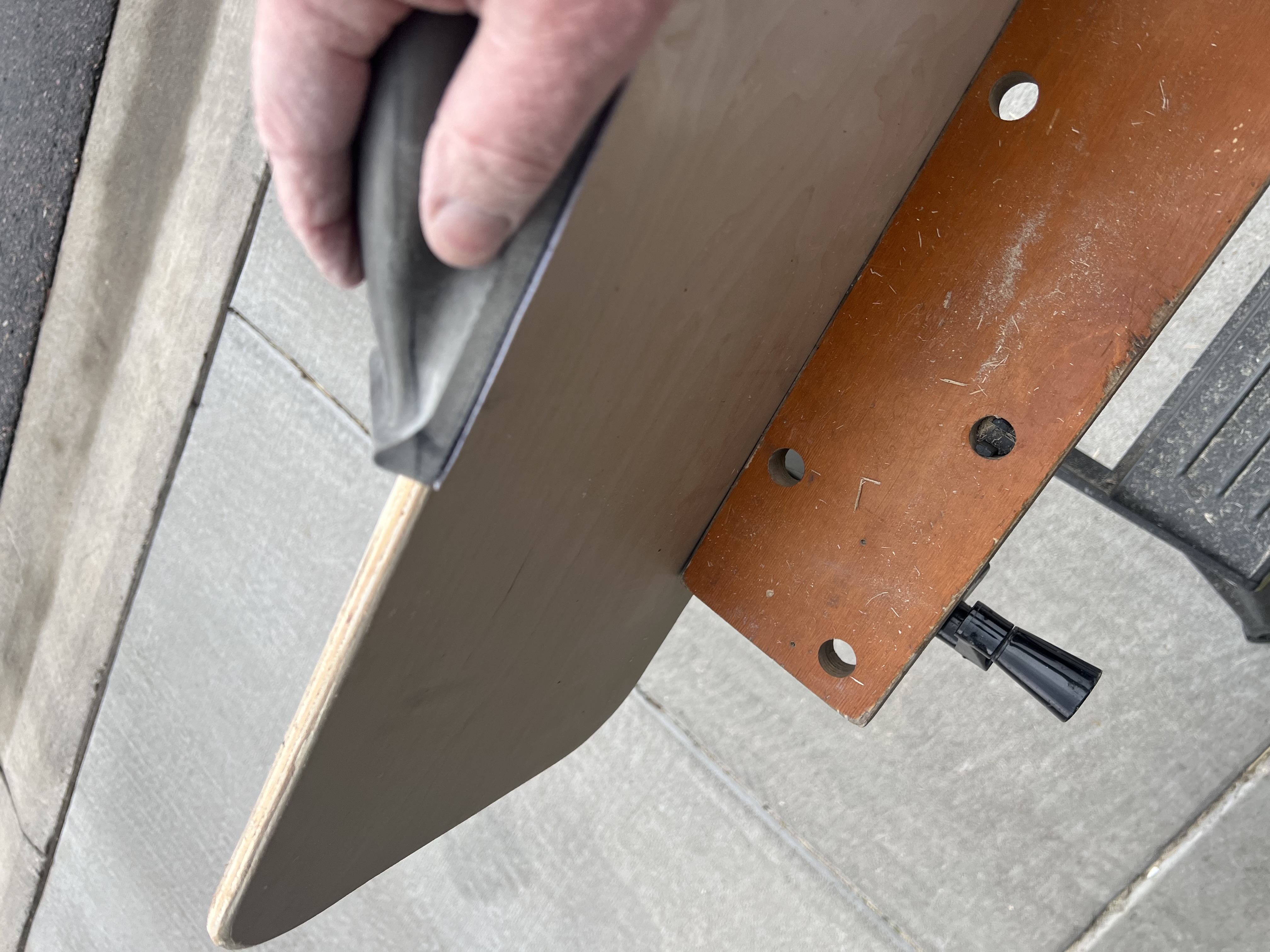 Have been on the search for bellyboards to buy here in the US. No luck so going at it myself. Trying to copy the classic UK dimensions of 120cm tall x 30cm wide x 0.9cm thick (mine is 4’x12”x1/2” birch plywood)…. Here I am mid build…. Will post up more pics as the project continues