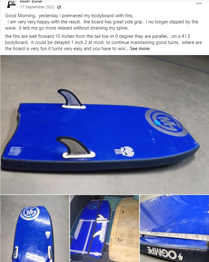 https://www.facebook.com/groups/paipobe ... 635875080/ The hands cutouts are not really a problem when riding the board, I just don't think about it. They could be handy to attach a leash or a handle. The nice thing about this board is the outline, and the rocker. My previous boards were hand made plywood boards, no rocker and straight rails. They were a bit faster in small waves but I find this outline more efficient for quick turns, it works a bit like a boogieboard, more dynamic. Someone with the tools and the will to make his own could just imitate this outline, get some rocker using boiled water to bend the nose and get a nice functional board.