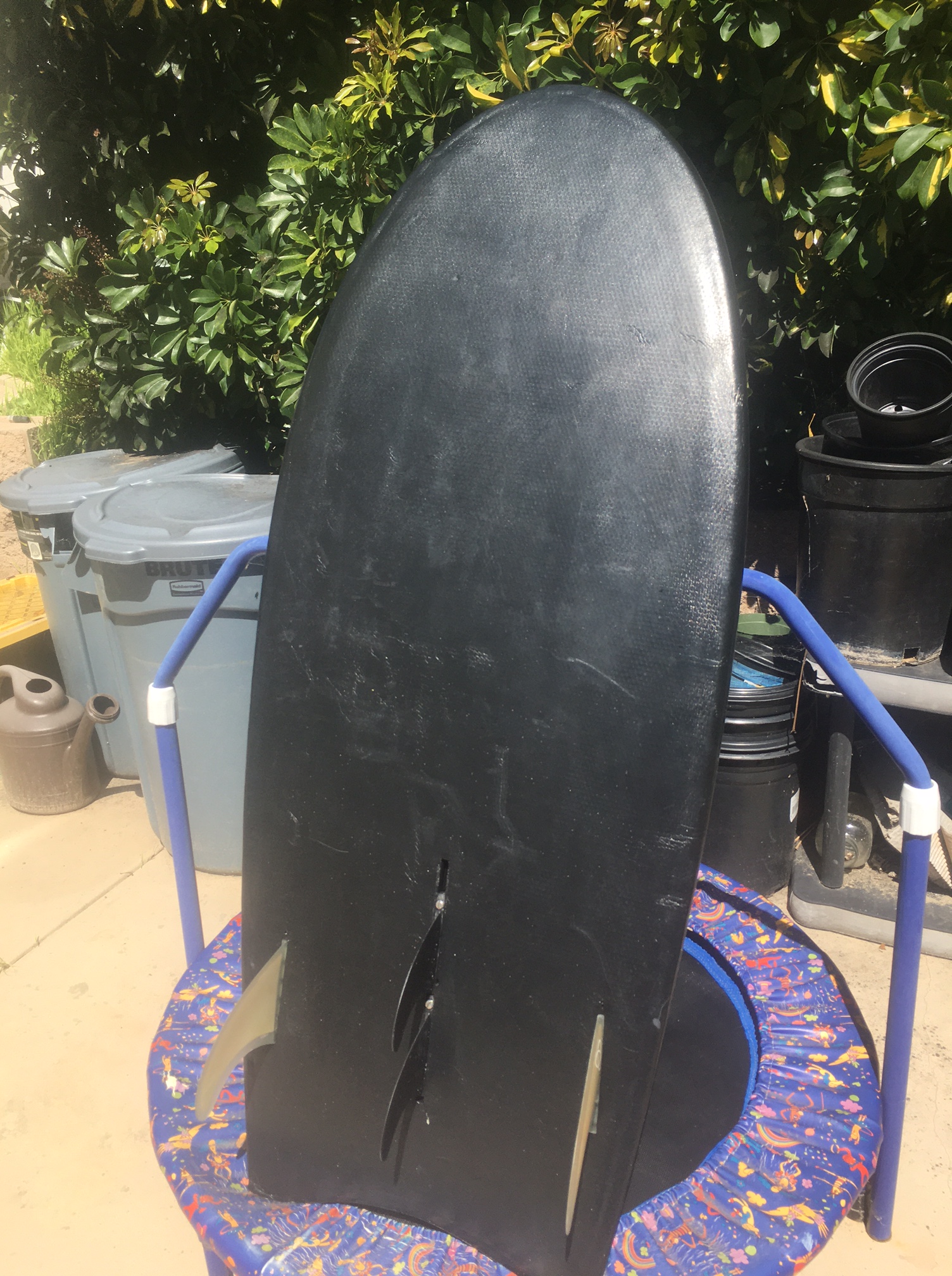 Here is Side View. Middle fin is adjustable forward and back. I already have a number of different size and shape fins to play with once I get some waves.