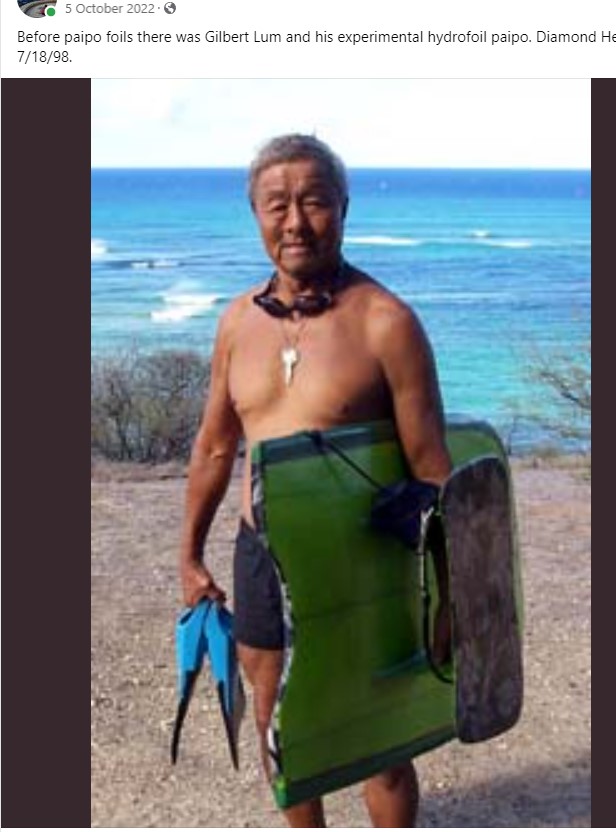 Yes!! I’d met Mr. Lum in 1996 at his favorite spot. Diamondhead, setting up his hydrofoil paipo talking stories with his good surfing buddies as they all get their boards waxed up. When he passed away, his Ohana had set up his long love of many Hawai’i Original Hydrofoil Paipo’s boards, Hawai’i First Hydrofoil Paipo Rider indeed… mahalo Unko Gilbert for your love and creations of Paipo’s Boards…. 🏝