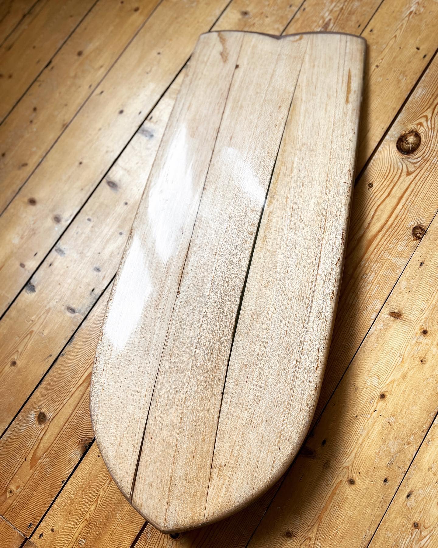 The planks (20mm) tend to come with a natural rocker, so I accentuate that by planing the nose and tail to around 12mm and the thickness of the rails is also thinned.