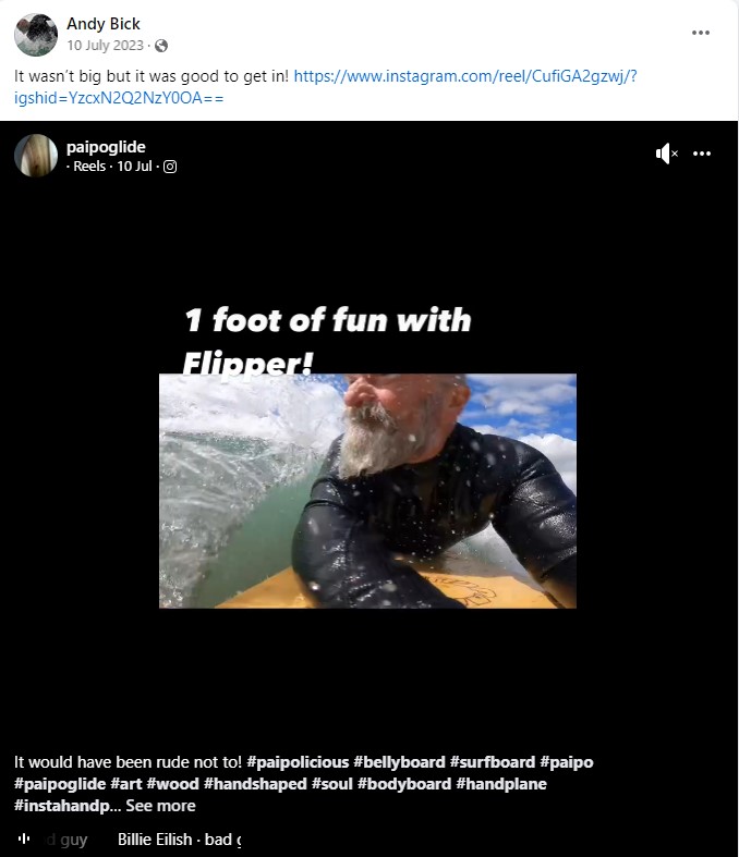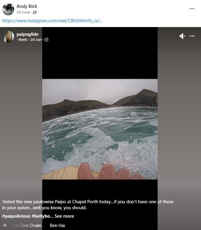 quite a few years ago. I was given a balsa log by Tris Cokes (Tris Surfboards) as it was too short to use for stand up. Balsa grows really quickly and the tree had to be trimmed to stop it going through the roof! The board being surfed in the group image (by Mike Numan) is one of my original hollow Eden balsa Paipos