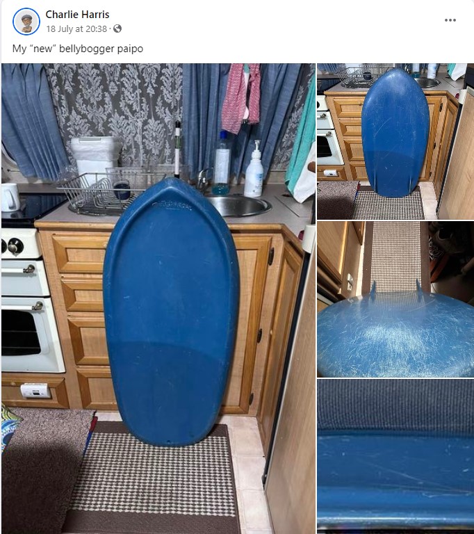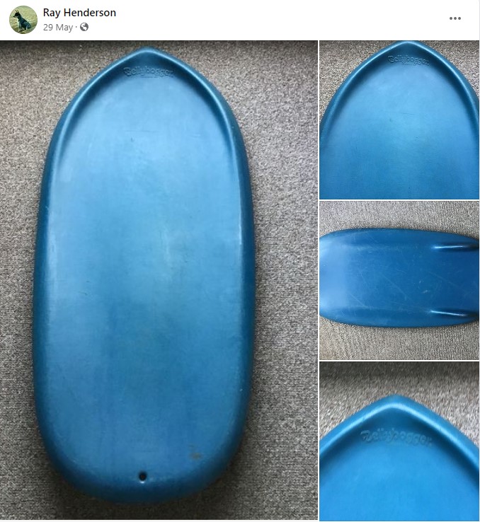 I picked up my blue Bellybogger at the local opshop for $20, 3 years ago. I road it a few times but the lack of flotation meant that it now hangs on the garage wall. I got my local shaper to make me a fibreglass version with a more refined shape, rails and more volume.