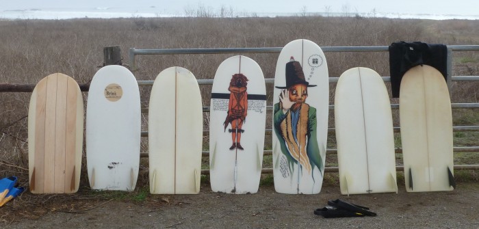 Our surf session was a relatively marginal go-out but excellent conditions, no crowd, and very fun with hollow, small, mostly closing out stuff. For my part, it was gratifying to watch Jeff jump on my two Bonzer paipos and basically haul ass and get