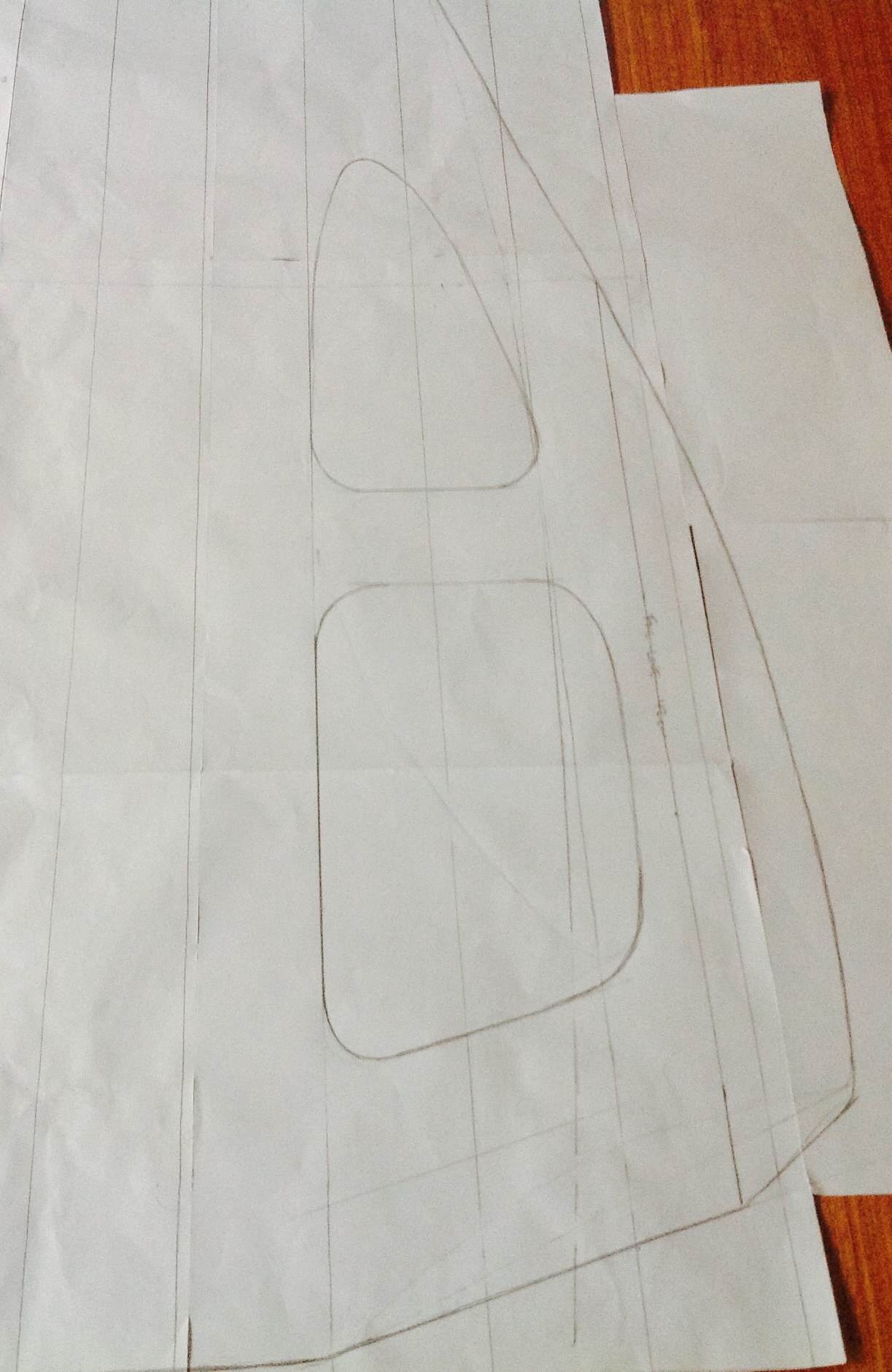 Here's the basic planshape, it looks too wide in the tail but remember the sides are rolled down so it won't be as wide as it looks.