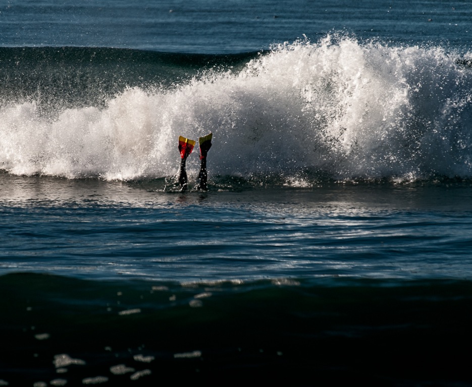 He obviously has a sense of timing and humour. The fins in the air are a classic.