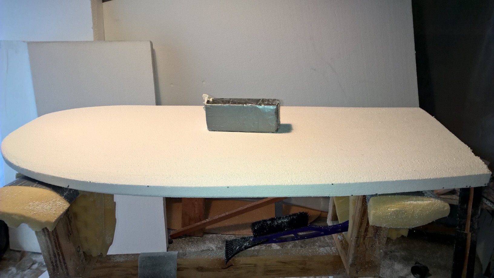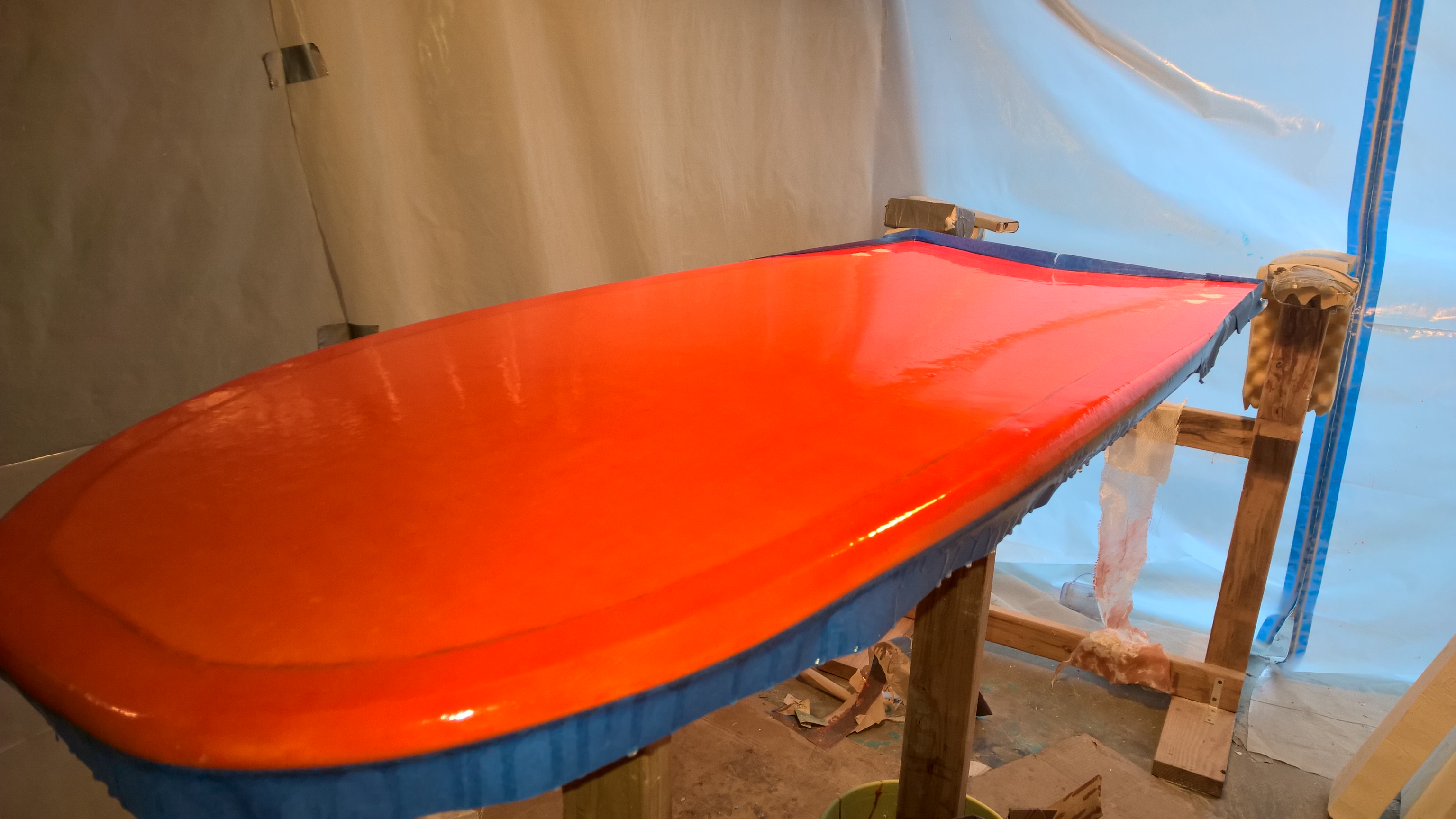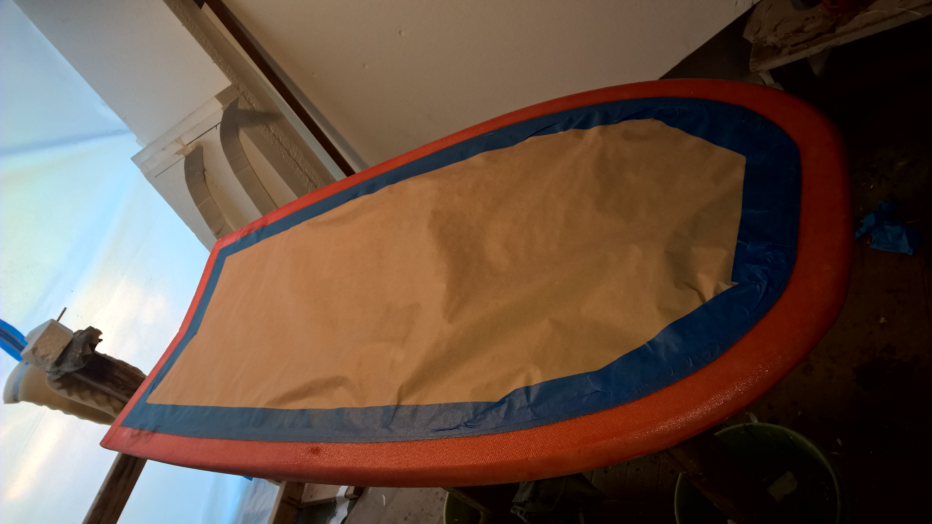 Here are some photos of my build: This is picture the top being sealed with epoxy and Microballons . Now I have sealed both sides and I have the FCS Fusion fin boxes in and have laminated the bottom with 2 layers of 6 oz cloth. Here I have taped off the bottom so I can do cut laps