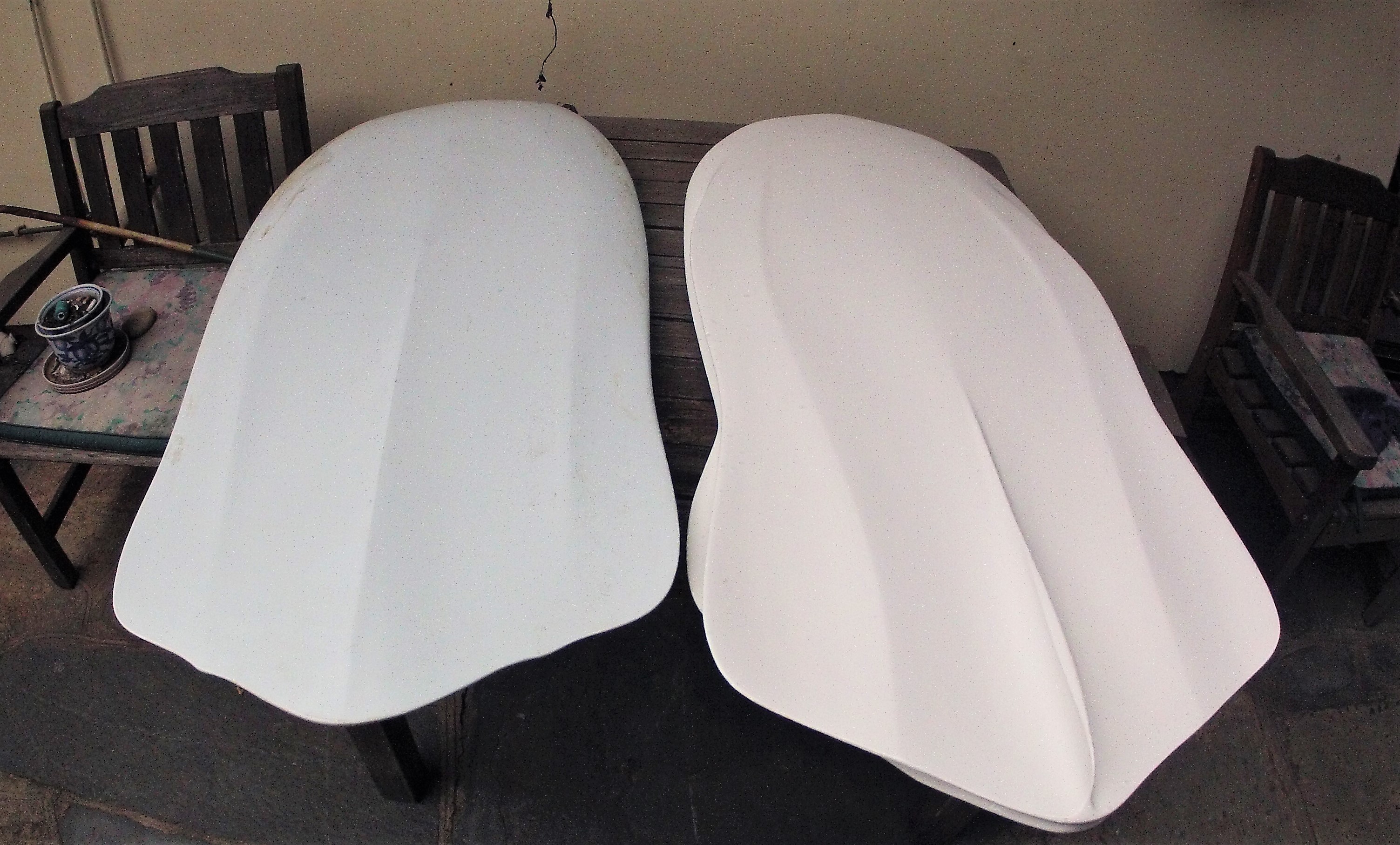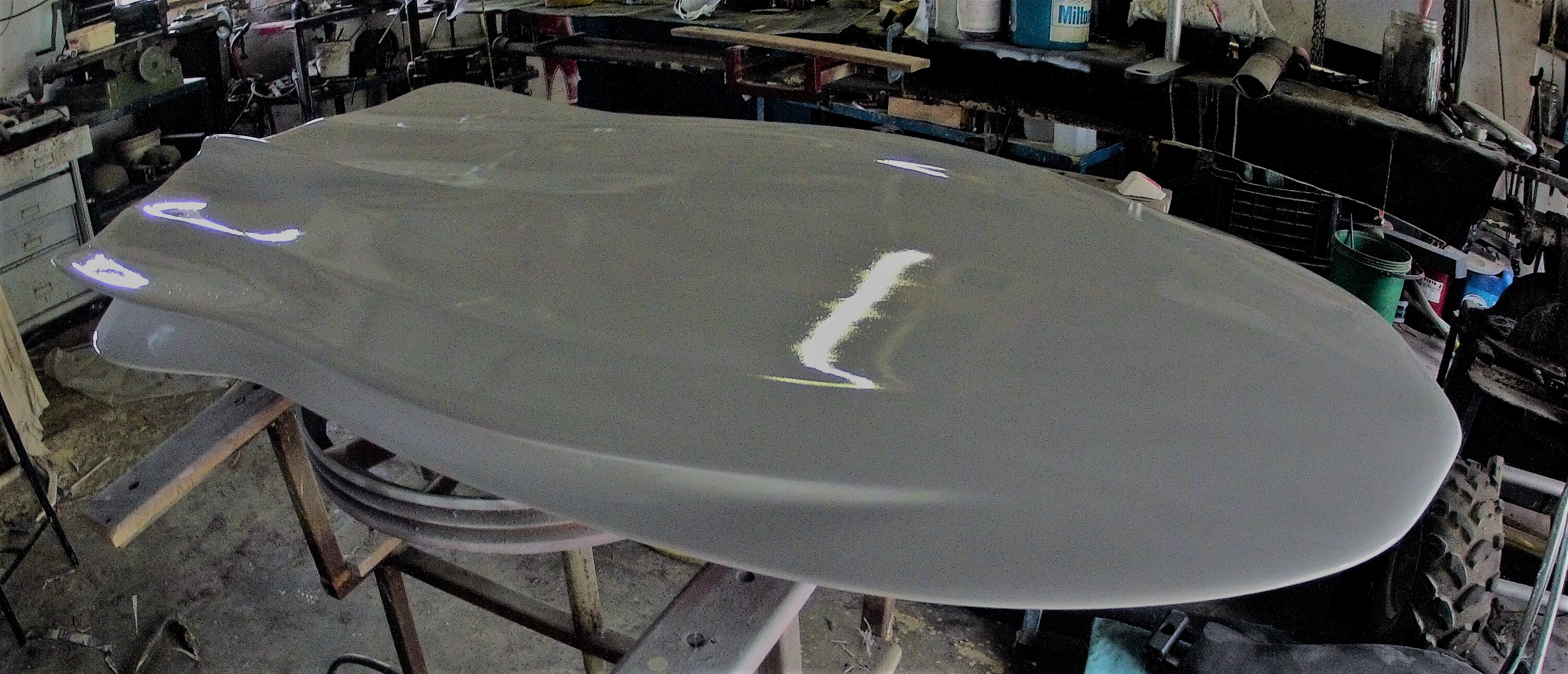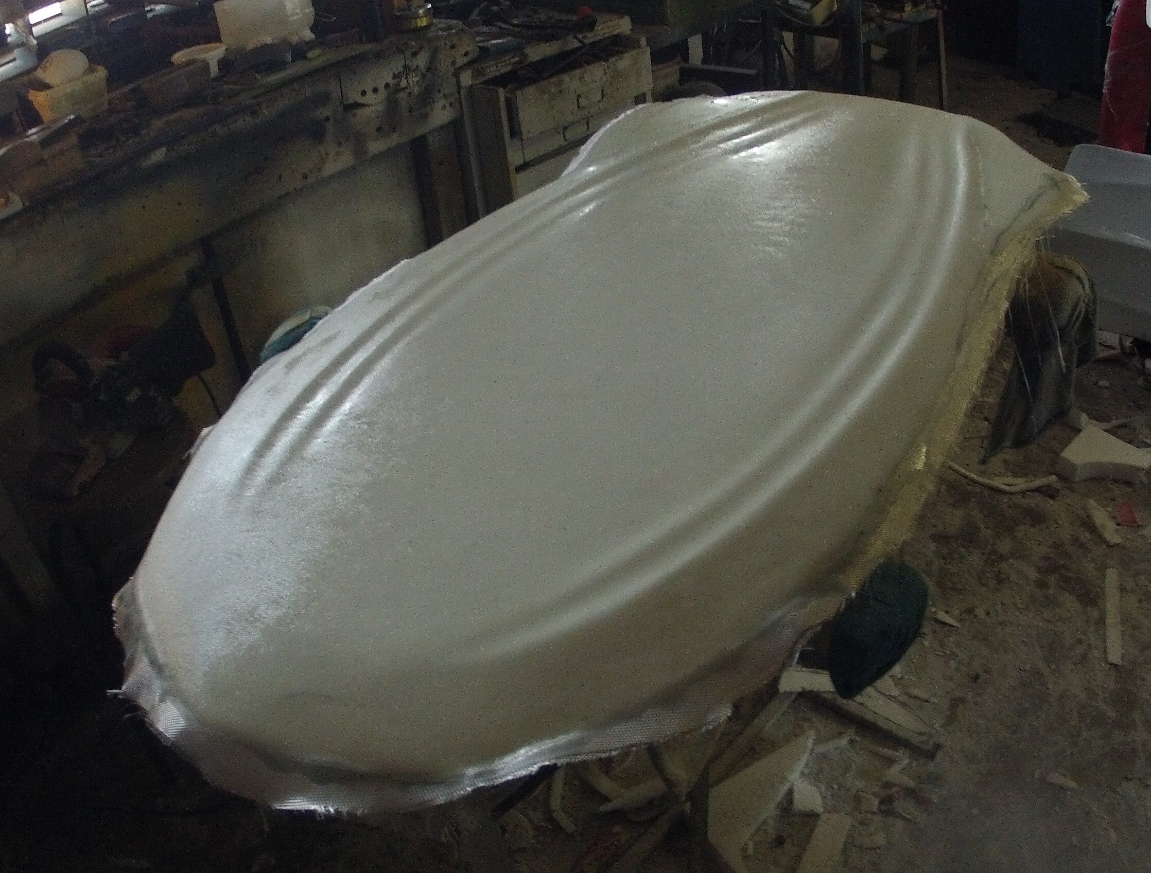 I'm thinking a couple extra layers of 4 oz. glass on deck side towards the rails in back (compression of glass in turns) might be beneficial both for longevity and also for more snappy flex of the "wings"