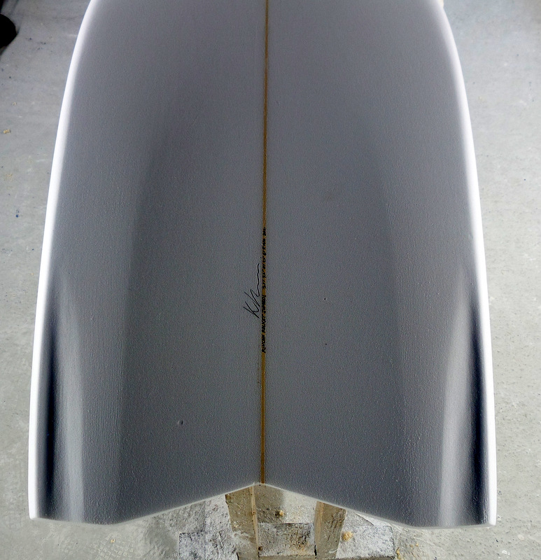 I like the bottom concave...very Lindsay Lorde/Bob Simmons. Nice transition from down rail in back to up rail in nose. Not easy to do with such a short distance. I'm interested to hear how the grooves in the tail affect control, assuming that's their purpose.