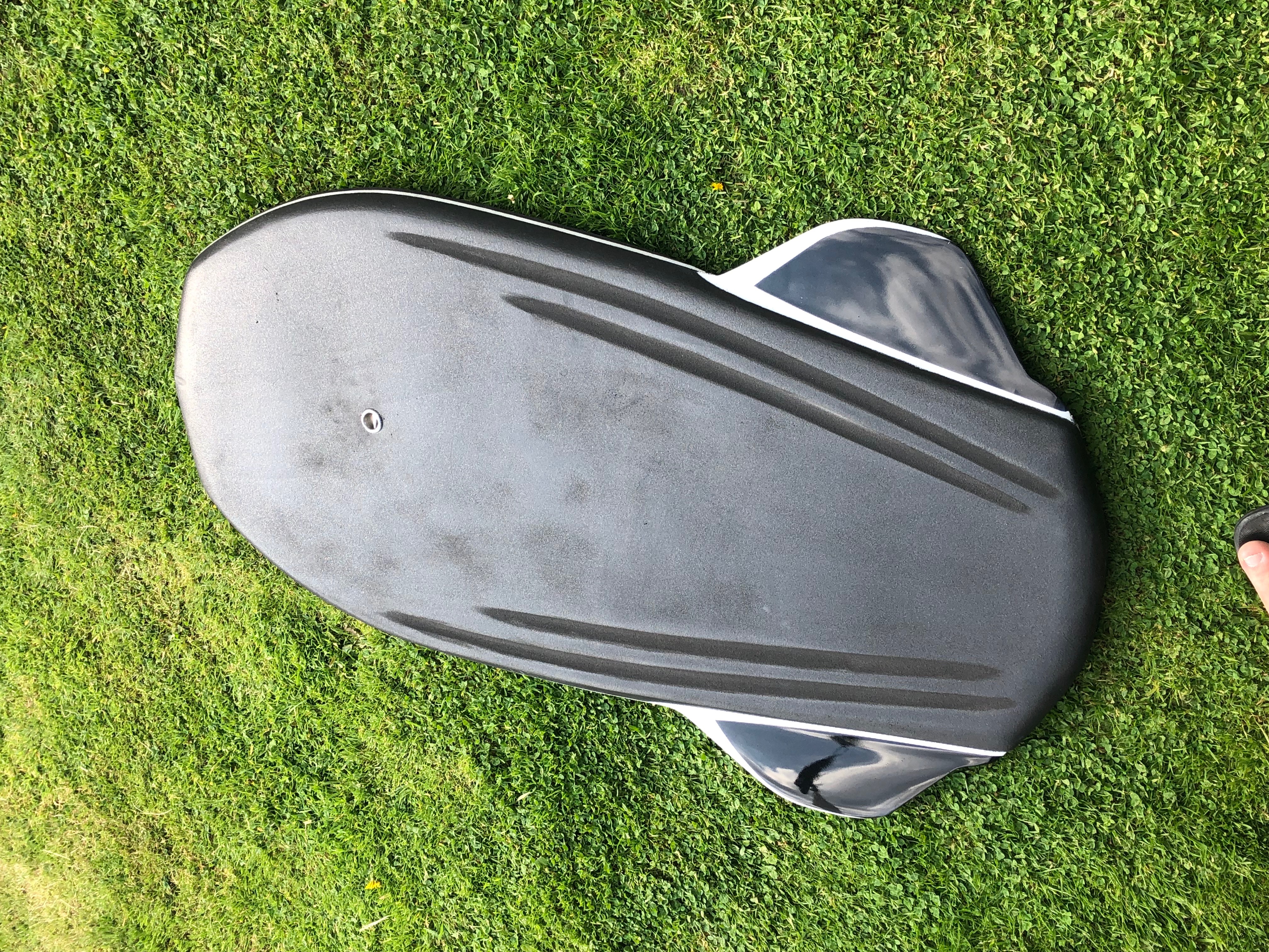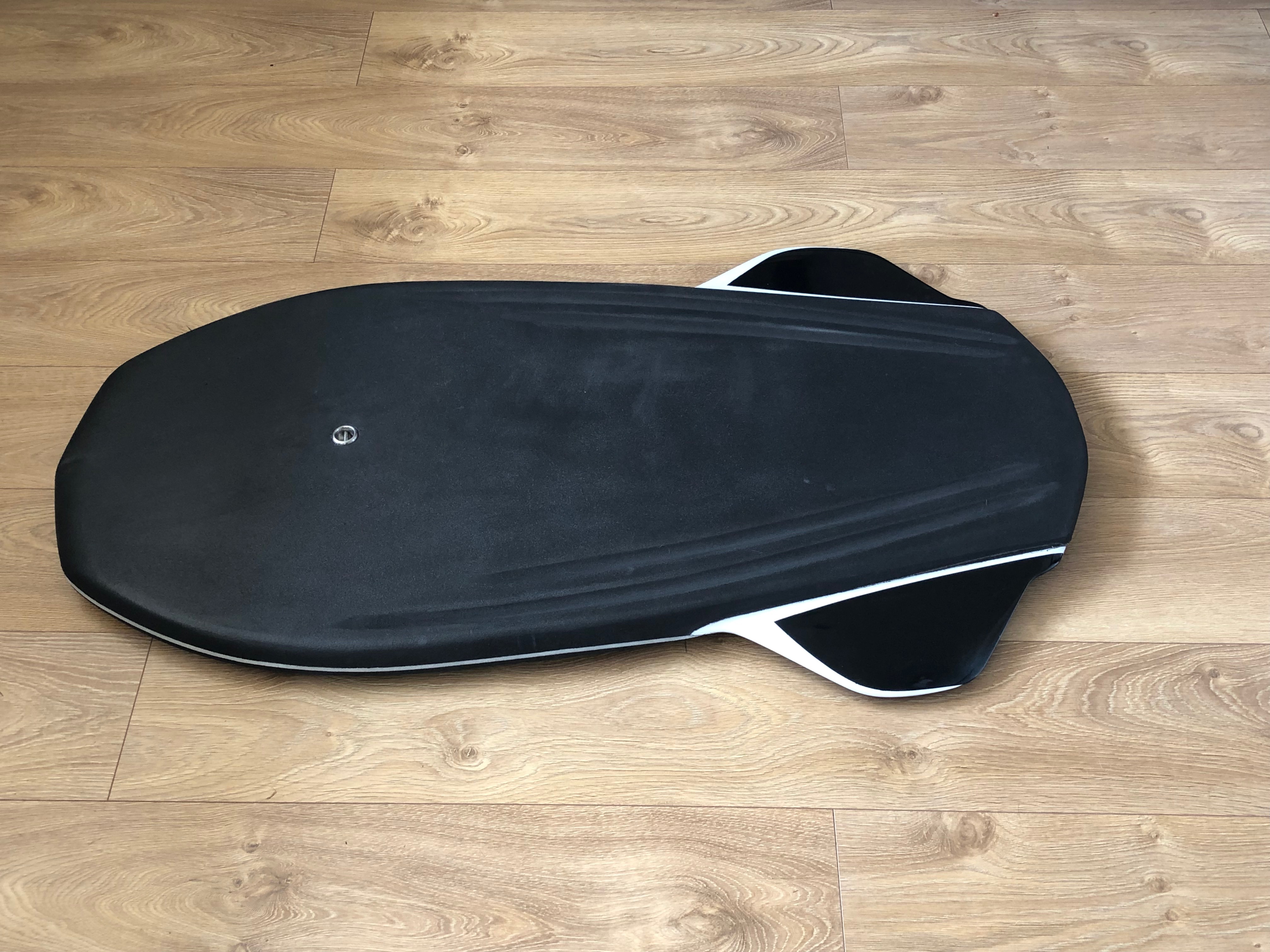 Made with a full width core of two layers of 5mm xps held together with 6oz cloth, plus a full length 5mm thick 20mm wide 3d core foam strip to reduce bending. Covered with 20 mm polyethylene top and bottom, for buoyancy .1130 long, 560mm at midpoint, and 660mm between wing tips. The idea is to smooth out the rail turbulence, making the rail generate more lift with less drag .Ways 6lbs. I am having lot of problems with the epoxy leaving blow holes causing the paint to bubble