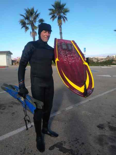 My injuries were pretty bad and wayyy too numerous to list - it was like a dark dark cloud was over me for several years - they just kept coming non-stop - Looking back, it was no doubt Grandpa and Jesus working The Forge of Life - they set it on MAX - So, with an ineffective knee replacement and a level three cervical fusion just to mention two issues...I ended up crutching it and basically on my back in my RV at 50-something years young... once really strong, vital and able - to disabled and in a lot of pain... pain that has unfortunately never left - I still can't hold my head up while paddling. Pain.... and regarding pain and medication.... arggh. I had gotten sober back in 1999 and this bout with prescription Vicodin was to be ended as soon as I could... My desire to somehow be productive was ringing the bell and I just couldn't fade away gimpin it and lying on my back... so the recovery recipe I used in Hawaii years before [1992] was about to repeat - just start.... start swimming everyday in the ocean and ask God to help. Mother Ocean and God had helped me before and I needed them again big time. Recovery, btw the older you get, is like watching paint dry... very slowwwww. The recovery simply started by swimming just one-lifeguard-tower-distance for a few weeks ... baby steps until I was able to get more distance. Btw, I swam alot of open ocean distance swims in Hawaii when I lived on The Big Island so I had some great groundwork already laid out for this recovery regimen.