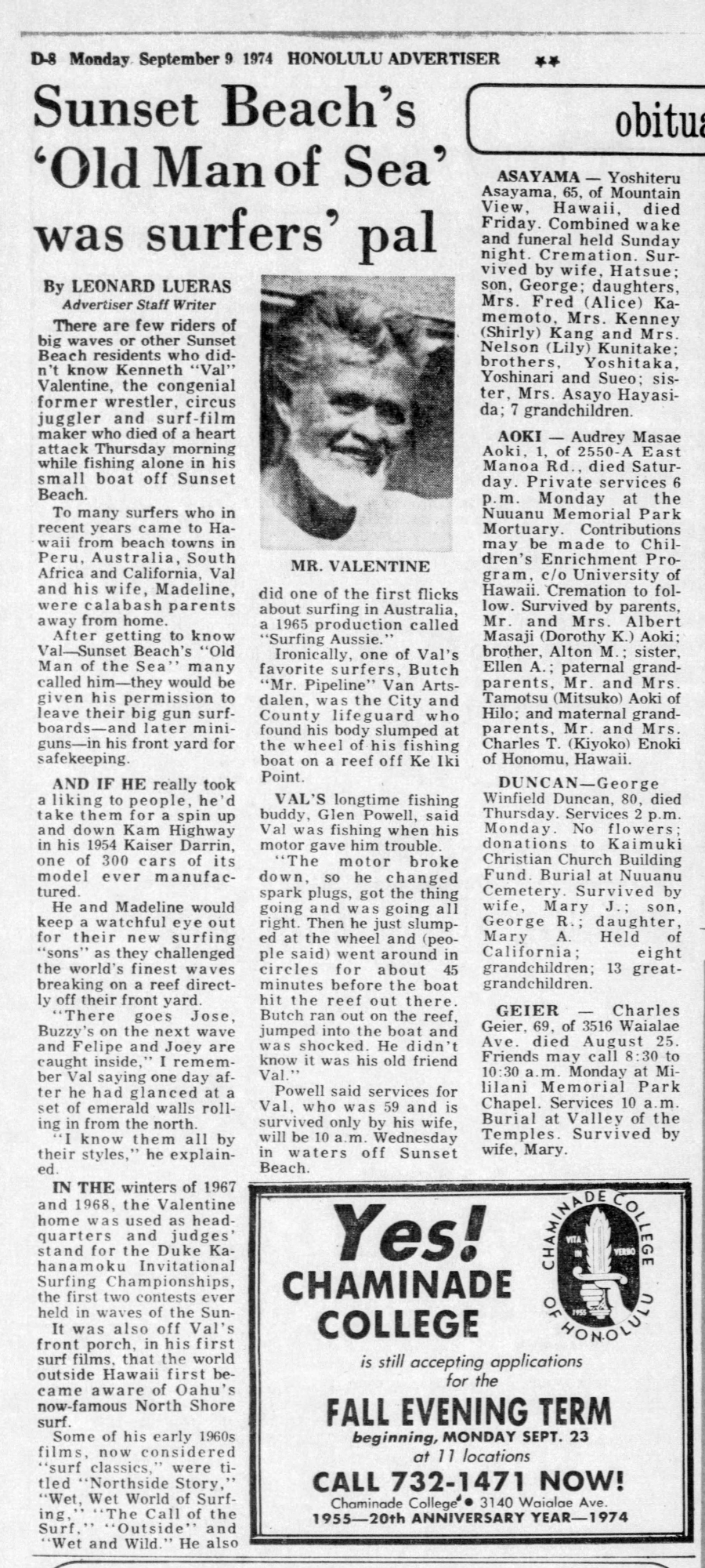 Man of Sea' was surfers' pal [Obituary]. The Honolulu Advertiser,