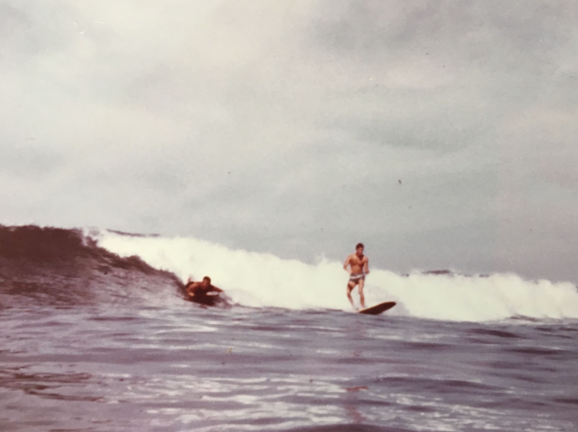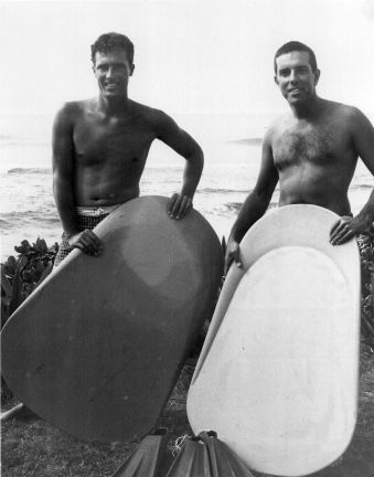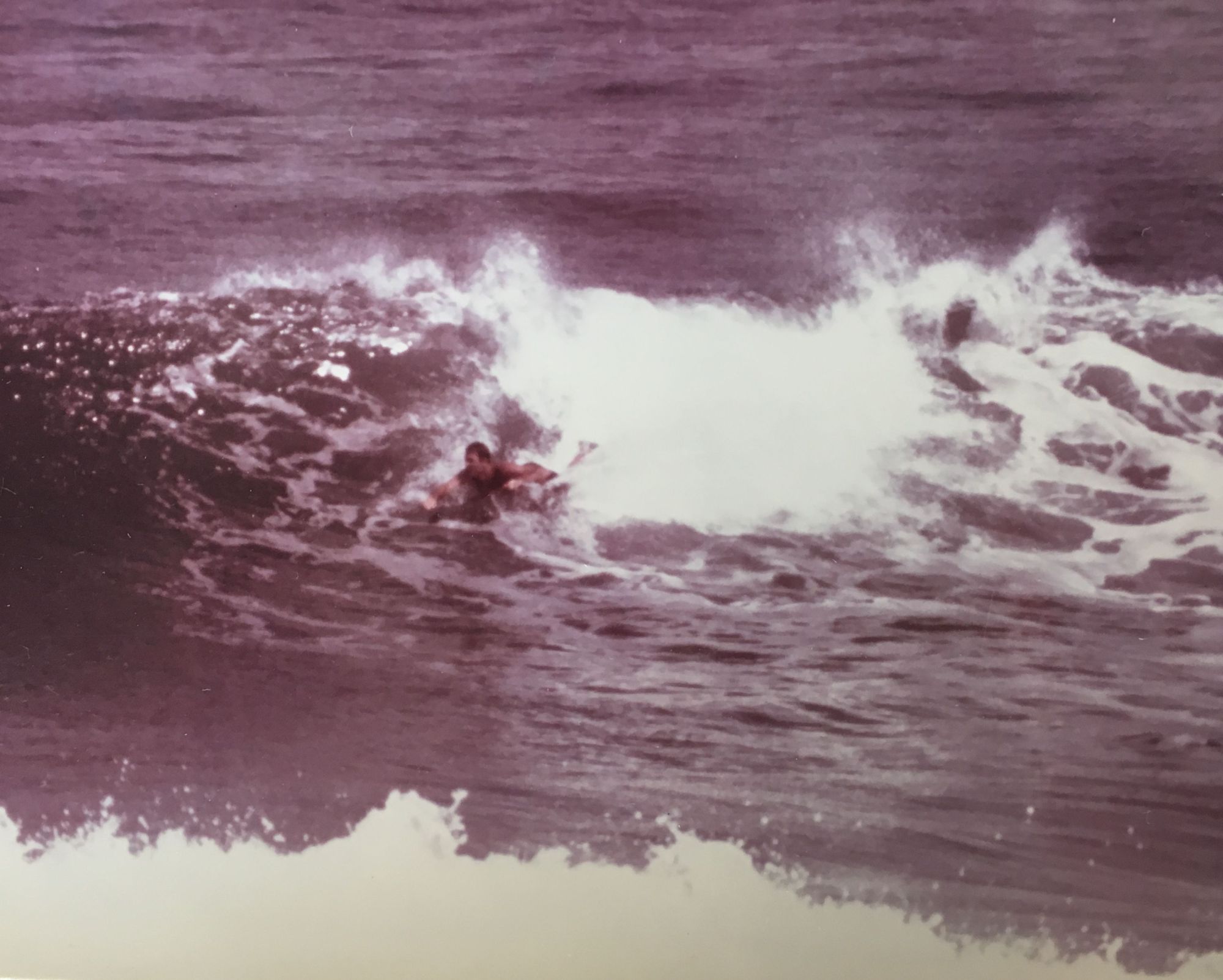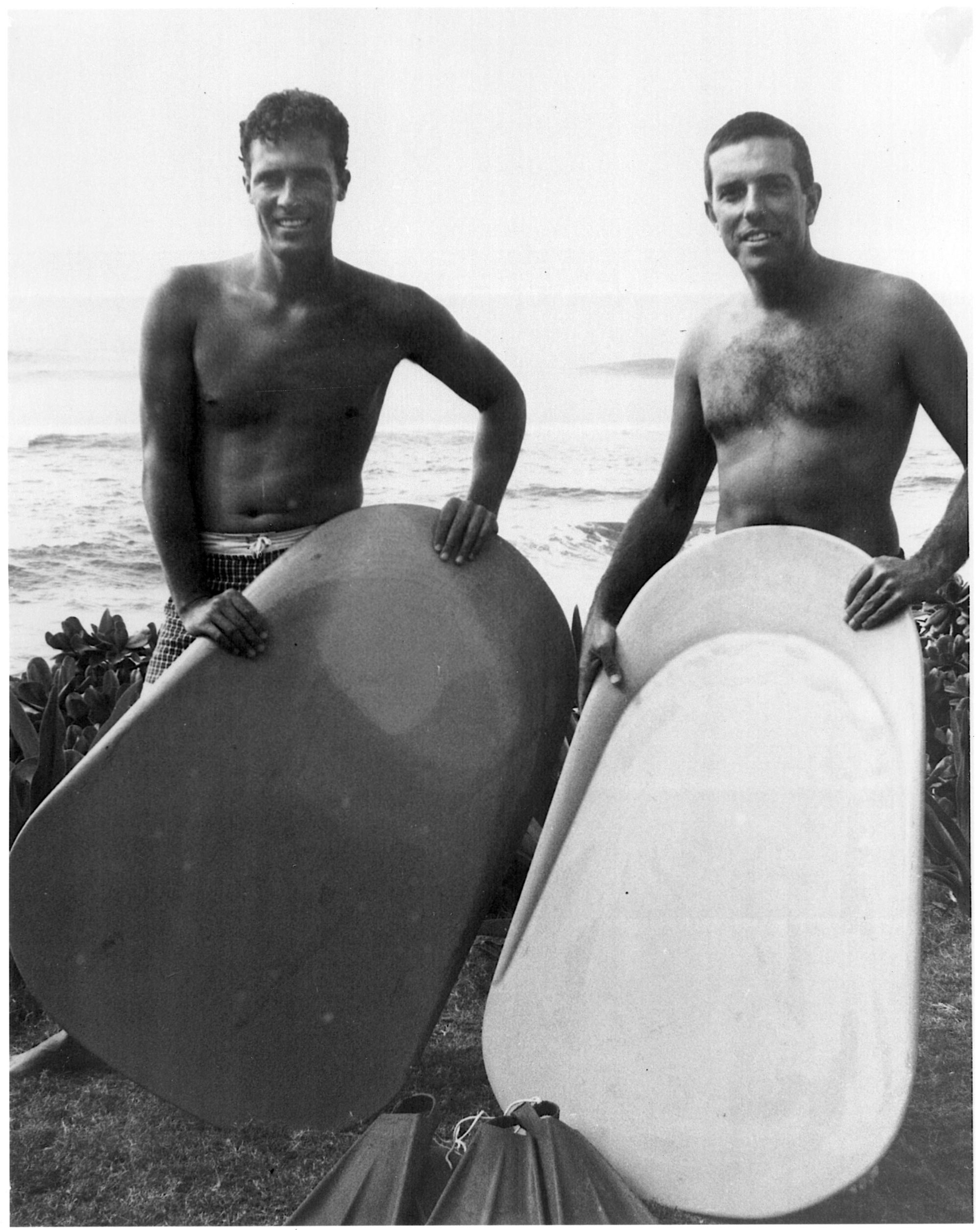 Soon he was making and riding his own redwood, twin fin paipo boards.