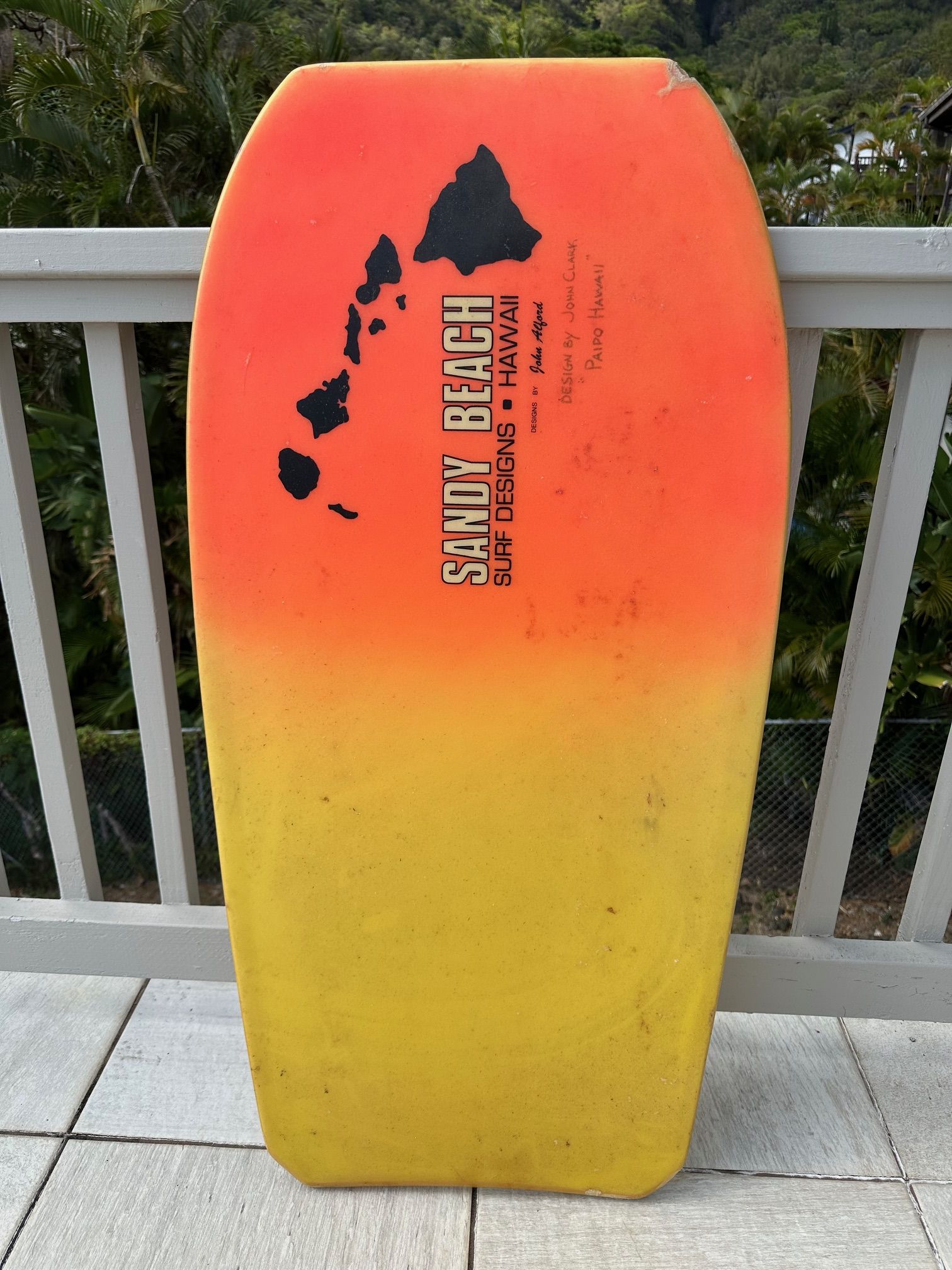 John Alford is a friend of mine, so I asked him to make me a paipo board using one of his skim board blanks and to shape it like a Morey boogie board. That was my first paipo board, and I still have it.