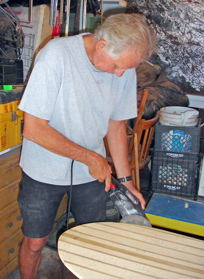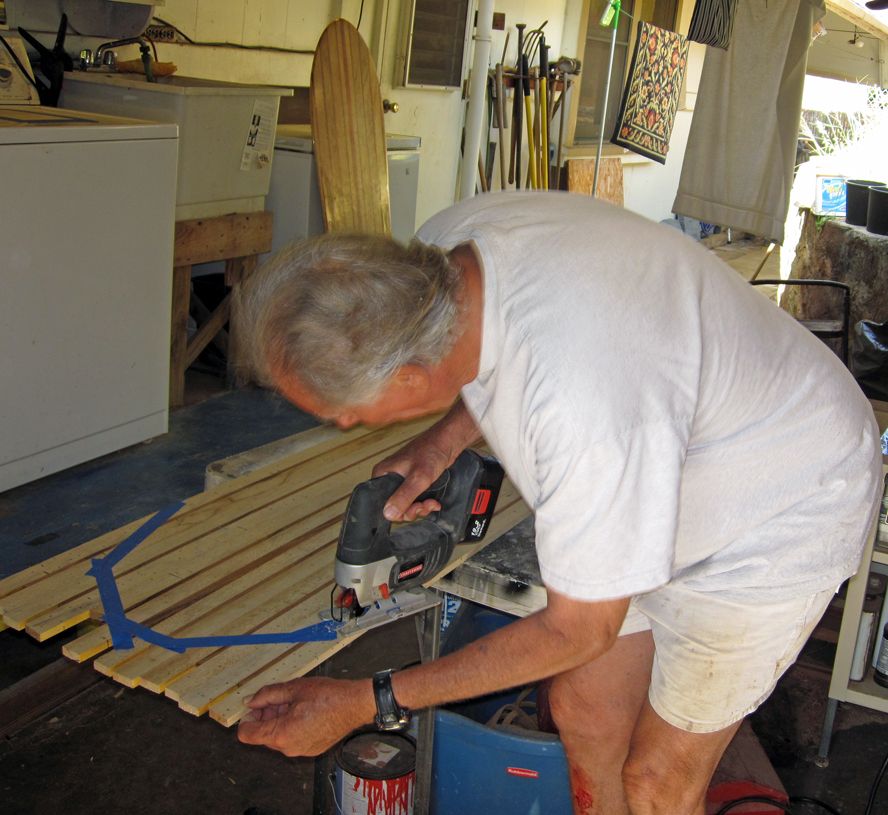 I never made my own boards. As I mentioned earlier, Bud Scelsa made four boards for me before he passed away, and I only assisted him with some of the manual labor, like gluing and glassing the boards. Bud was a master craftsman when it came to working with wood, and he had all the tools for his craft. He used a jointer to make straight edges along a piece of wood's length and a planer to level the face of a piece of wood to the width he was after.