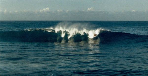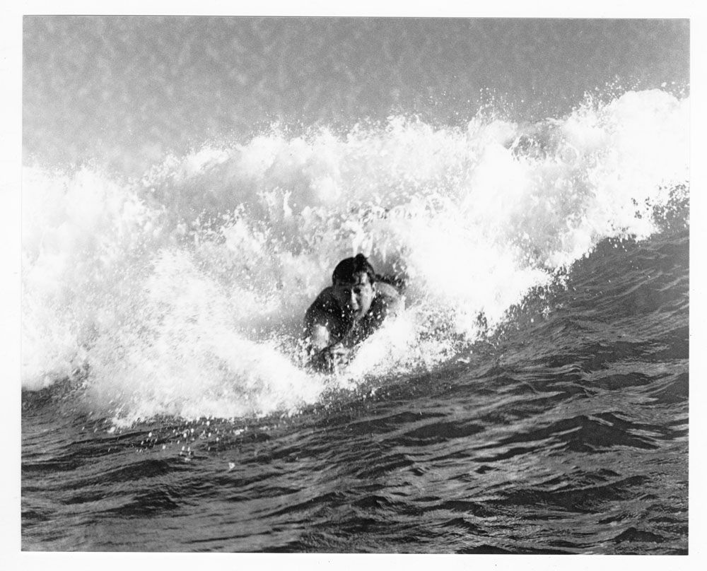 John bodysurfing at Magic Sands, Big Island, 1985. |