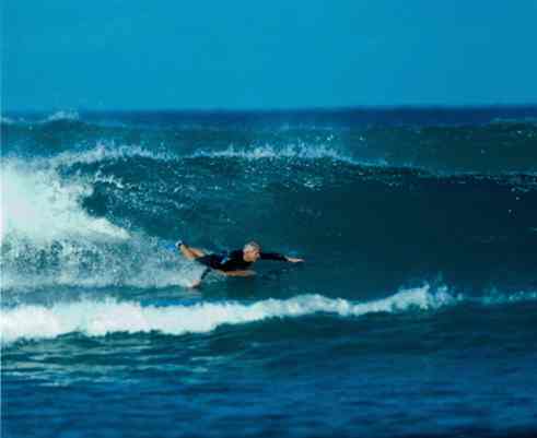My style of bodysurfing has always been to ride with both arms outstretched in front of me. I use my arms to help me maneuver across the face of a wave. I use the same style when I'm riding a paipo board.