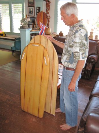 John with Wally Froiseth's and Bud's paipos, September 8, 2012. |