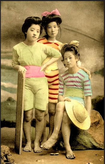 In 2012 a surf historian found a 1903 postcard from Japan that showed several girls in swimwear-of-the-day with one of them holding a small board. The investigation of that postcard that followed revealed that the board was a bodyboard and that Japan had a traditional surf culture of its own called itago nori.