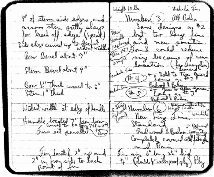 Wally Froiseth's Pai Po Shaping Record: Boards #2 to #6. Fin size experimentation. |