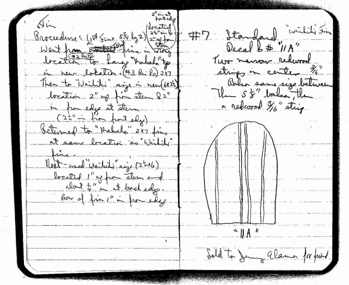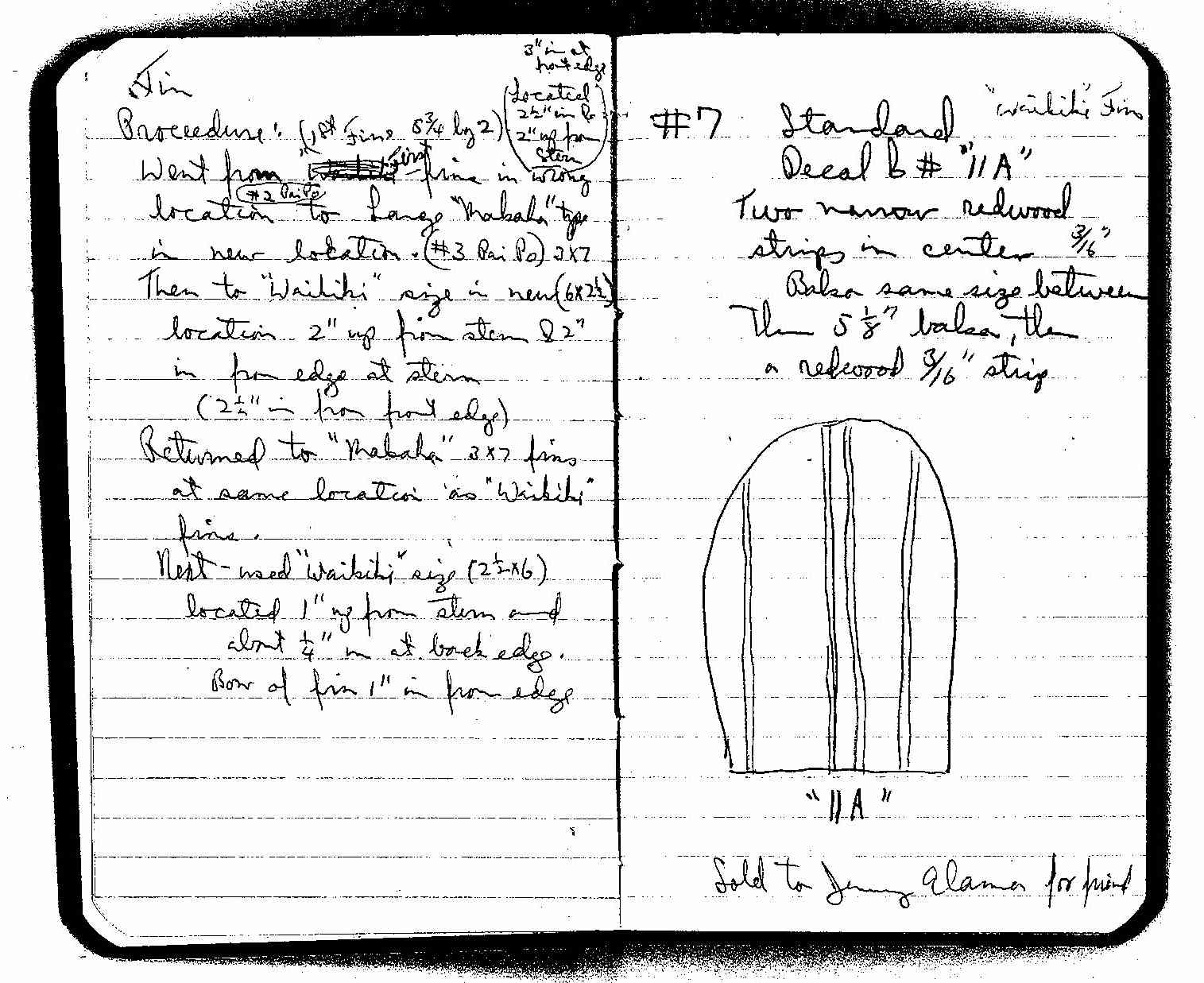 Wally Froiseth's Pai Po Shaping Record: Boards # 6 and #7. Fin experimentation. |