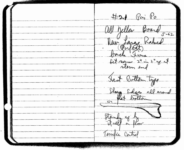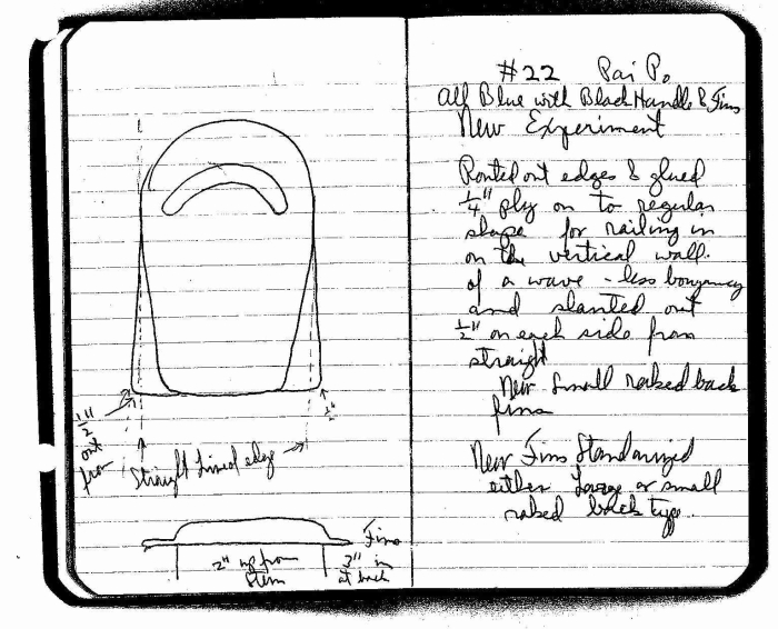 Wally Froiseth's Pai Po Shaping Record: Board #21 (1962). Larger raked fins. |
