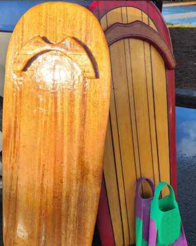 The paipo boards of that period, the early 1900s, were longer and narrower compared to today's boards. They were similar in design to the original Hawaiian bodyboards that were made from tree trunks, but as different types of glue, wood and tools were introduced in Hawaii, paipo boards took on many different shapes and dimensions.