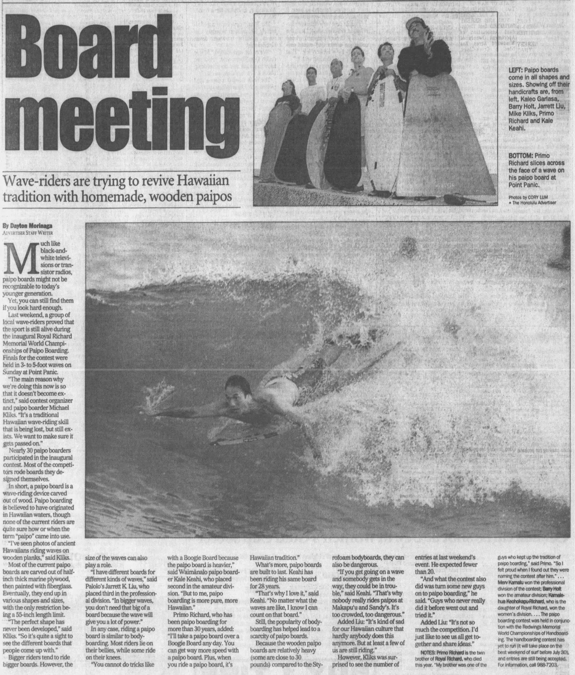 MyPaipoBoards | Paipo Forums | About | Interviews | Bibliography | WaveRiders Info | Search MyPaipoBds | Donate | |