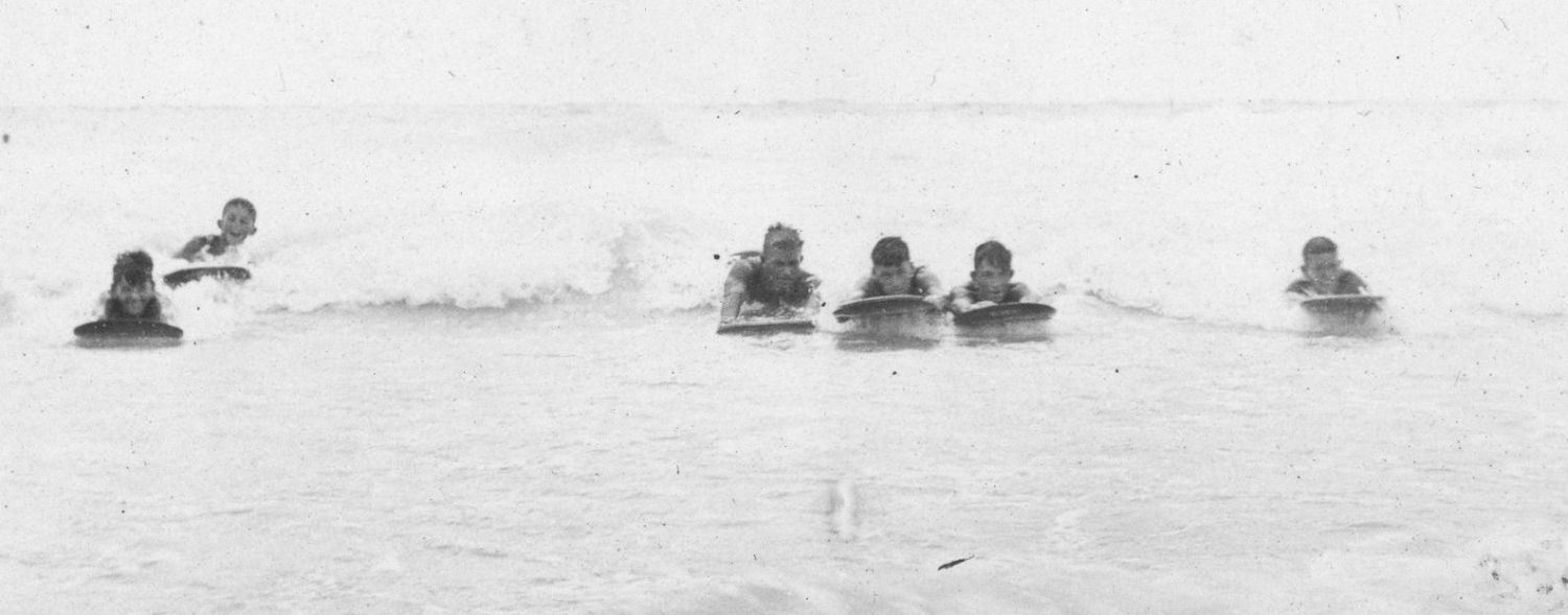 was out in the surf on foam plastic surfoplanes (a term or model of