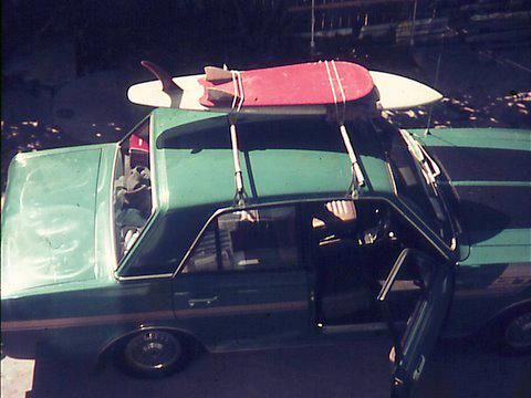 on top of Dave Cairn's GT Cortina packed for a trip to Noosa, ca. 1970.