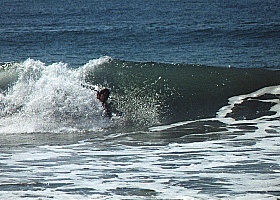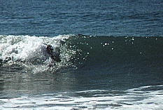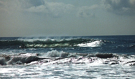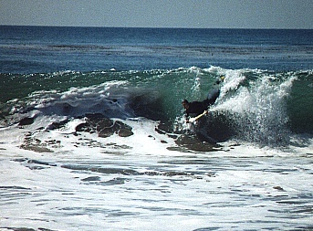 Of course, this is also where the bodyboard can become an essential piece of surf equipment. Slogging pitchouts can become fun. I've become lost for weeks at a time chasing moments in the barrel. Why fight it out with the masses at the best beaches, perfecting snap turns based on the velocity of the spray which buffets paddlers? Same swell can provide mindblasting impressions of clean green walls, reflections of sand bottom ripples, baitfish high in the cresting wave ahead of the rapidly falling curtain. |