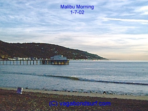 I drove down to Malibu for sunrise this morning. I figured, with my cynical and warped mind, and having had a few years of Malibu experience in the 70's, that this time there might be some truly sappy shrines to Dora put up over the weekend as the pretenders came out of the woodwork. I also figured that if he died on a Thursday, his spirit went "What the hell's this?" on Friday, and he would never go to Modern Malibu on a weekend...I figured Monday would be the day. So down there I went, and found First Point almost empty, clouds on the horizon but sun up, with a light Santa Ana adding a bit of texture. 10 people were out. 2nd and 3rd Points were empty (lagoon open and flowing - straight from the Tapia sewerage treatment plant). No shrines at all, or even remnants. There might be hope for surfing. That wave is still one of the most beautiful...straight out of dreams we have no right to dream. I took some photos, as much for myself as anybody else. Dora wasn't there, in the spirit or the flesh, as far as I could tell. It's a sacred place, not a person. I'd like to think, if he wanted, that maybe his ashes will wind up there some warm, full-moon, south swell September night. But on this morning you could look up the point, walk the sand at the water's edge, or look back down the point at that magic place and feel a summer day in 1956 with the future still ahead of us all. Nels Norene vagabondsurf.com |