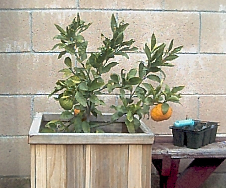 The top tree in the container is named "Bob" in honor of Bob Simmons, the pioneering surfer and designer. It got a name partly as a joke, a riff off an online thread about Simmons and his eccentricities, one of which was a fixation about oranges and health. I added two other trees and called them "Matt" and "Joe" (for Kivlin and Quigg respectively) just to maintain a theme. It's obviously quite a private joke, as contemporary surfing in 2002 might as well be from a different century from the era which spawned it. In the long run it doesn't even matter.
