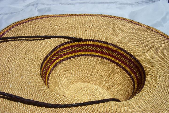 John Mellor checked in with these two photos of his beach hat. The colored band visible on the inside was originally duplicated on the outside - if you look close you can still make it out as a very slight discoloration. |