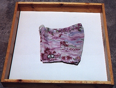 My Irish-Hawaiian friend Bill Griffin got these for me as a birthday present back in 1977. I was about one semester and a half away from graduating from college at that point, and I was chomping at the bit to see the world. He was lifeguarding that summer, I think; related on his mother's side somehow to the Sunn family in Makaha, he and I shared an appreciation of the quieter side of Hawaiian living. These trunks ventured to New Zealand, Australia's East Coast, Fiji, Tahitian Islands, and lots of California. I totally blew out the butt crack seam - I'm sure those in "the know" have a technical term for this seam - while bending over to adjust the fin on my board at the old South Jetty in Ventura one beautiful Fall morning. Times were changing. I replaced them with a pair of Quiksilvers, my one and only pair of honest-to-God surf trunks without a waist tie. Those were good trunks for surfing on a board, but weren't adjustable enough for bodysurfing. I eventually gave them to my bodysurfing partner (now brother-in-law) when he somehow managed to blow out the entire seam which divided his lifeguard trunks into legs - he was stuck in San Clemente with a little red skirt. |