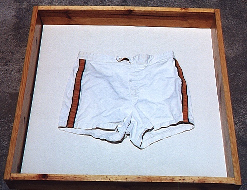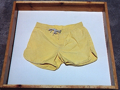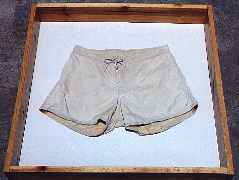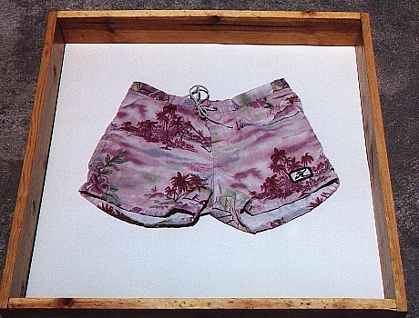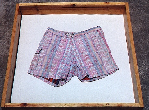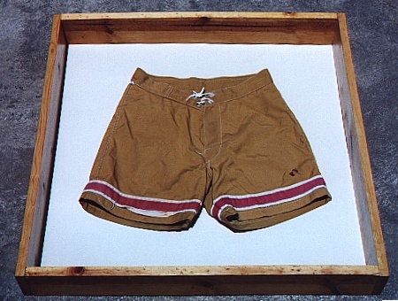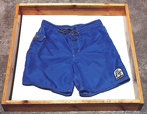 What you see below is my surf trunk collection, minus only three pair, one of which will make an appearance eventually. The other, my earliest pair, were light blue canvas Hang Ten trunks from the 60's. I can see them where I left them, hanging over the door of a stall at the old restroom just south of the Ventura Pier, back when you could still drive under it, on a cold, foggy October morning. I was thinking about getting in the car and getting warm, I guess, and they got away from me. They were long gone by the time I got back. |